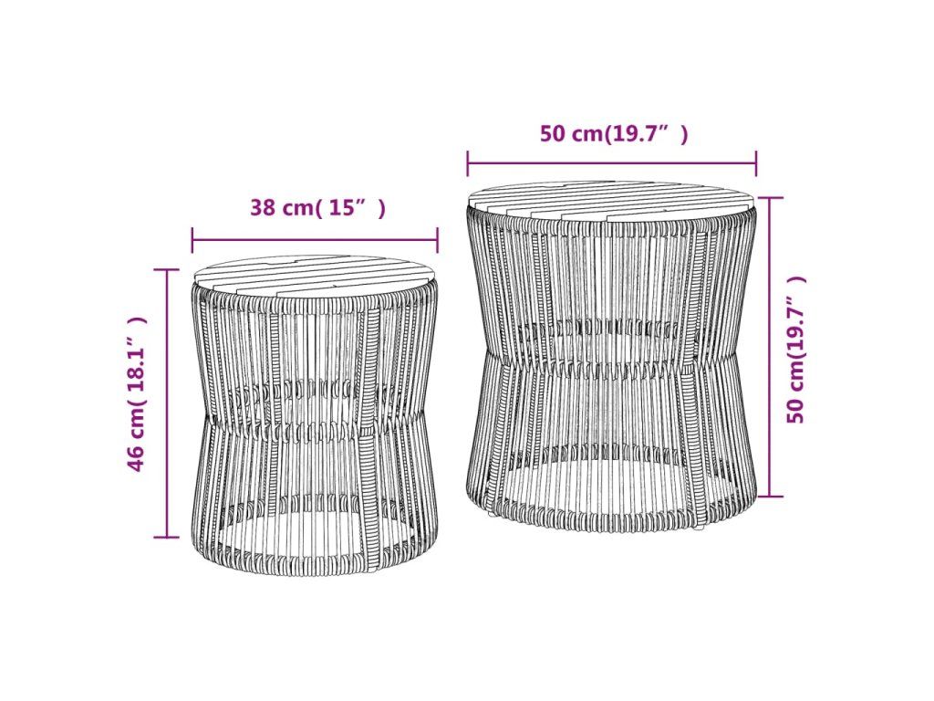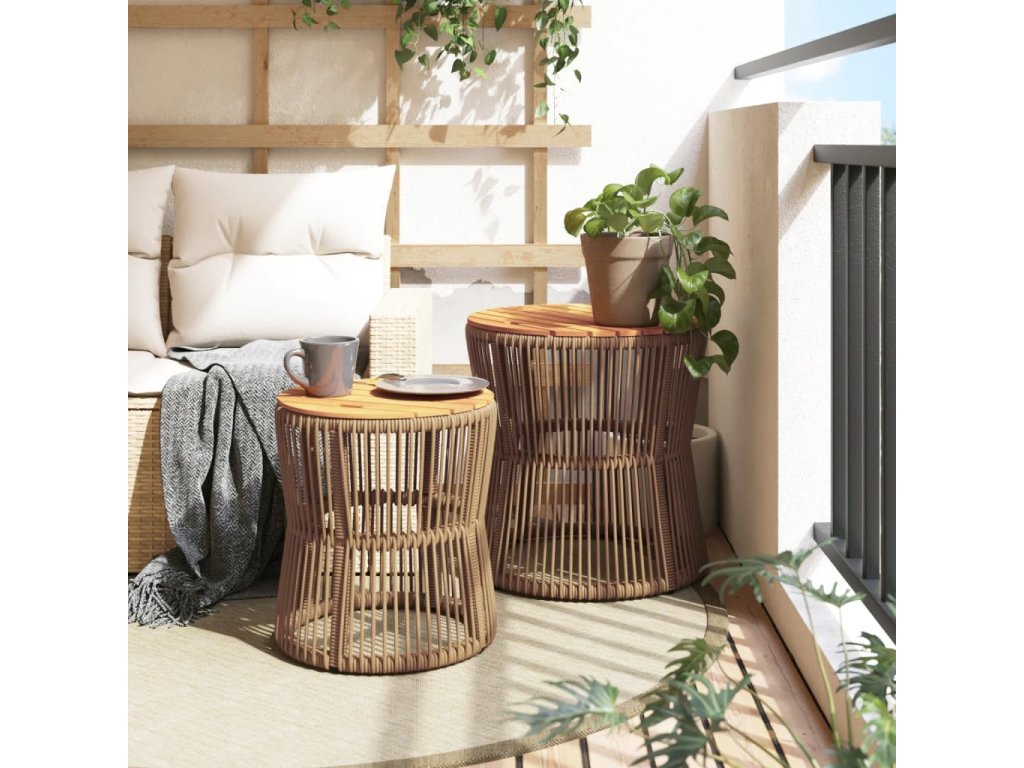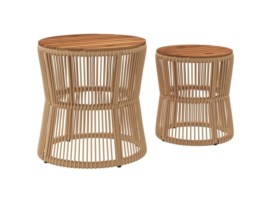 Multidom Záhradné bočné stolíky s drevenou doskou 2 ks béžové polyratan
