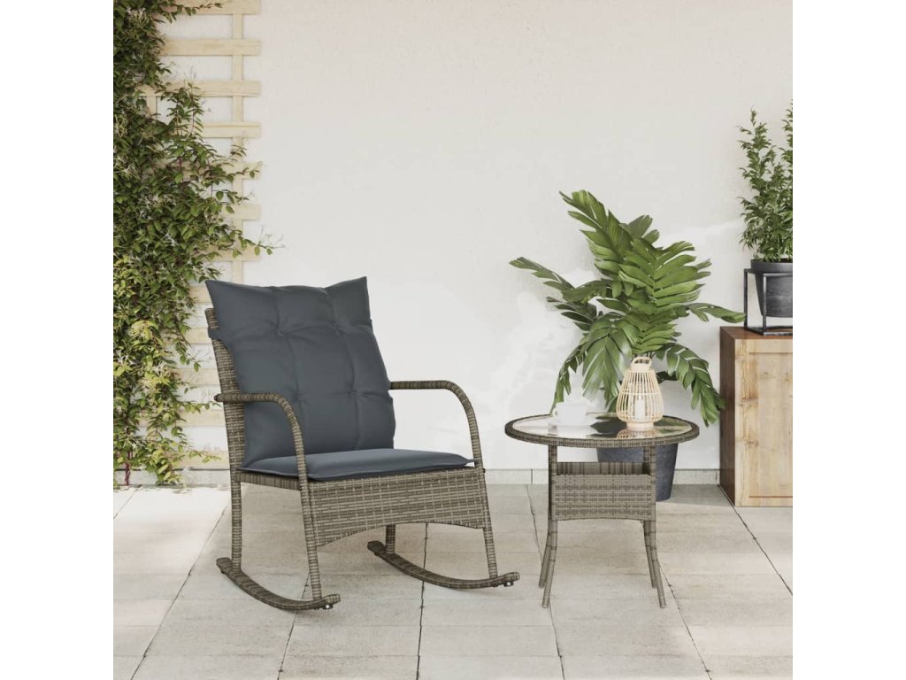 Multidom Záhradné hojdacie kreslo s vankúšmi sivé polyratan