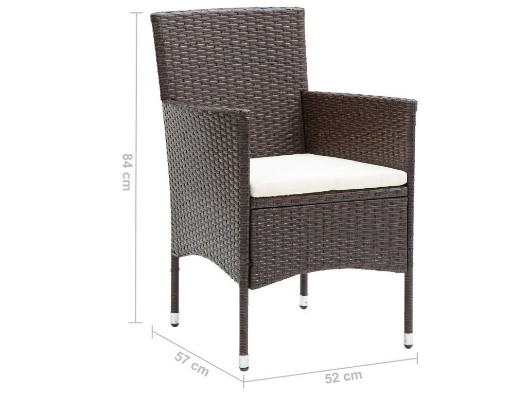 Vďaka pevnému oceľovému rámu, ktorý je obalený ručne tkaným PE ratanom a odolný voči poveternostným vplyvom, je táto súprava záhradných stoličiek odolná voči hrdzi a plesniam, a poskytne vám dlhé roky kvalitného odpočinku. Táto súprava so zaobleným operadlom a lakťovou opierkou má ergonomický tvar pre maximálne pohodlie. Pre lepšiu oporu sú pribalené aj vankúše. Poťah na zips je odnímateľný pre ľahké pranie.