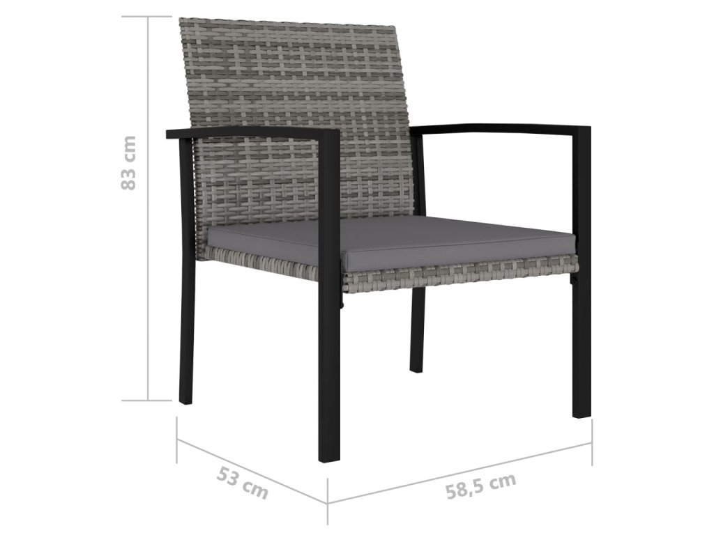 Robustný oceľový rám je pokrytý PE ratanom, ktorý je odolný voči poveternostným vplyvom, vďaka čomu sú záhradné kreslá stabilné, trvácne a vhodné do vonkajších priestorov. Podložky na sedadlo, ktoré sú súčasťou balenia, poskytujú potrebné pohodlie počas sedenia. Vonkajšie stoličky majú ľahkú konštrukciu, takže sa dajú jednoducho presunúť.