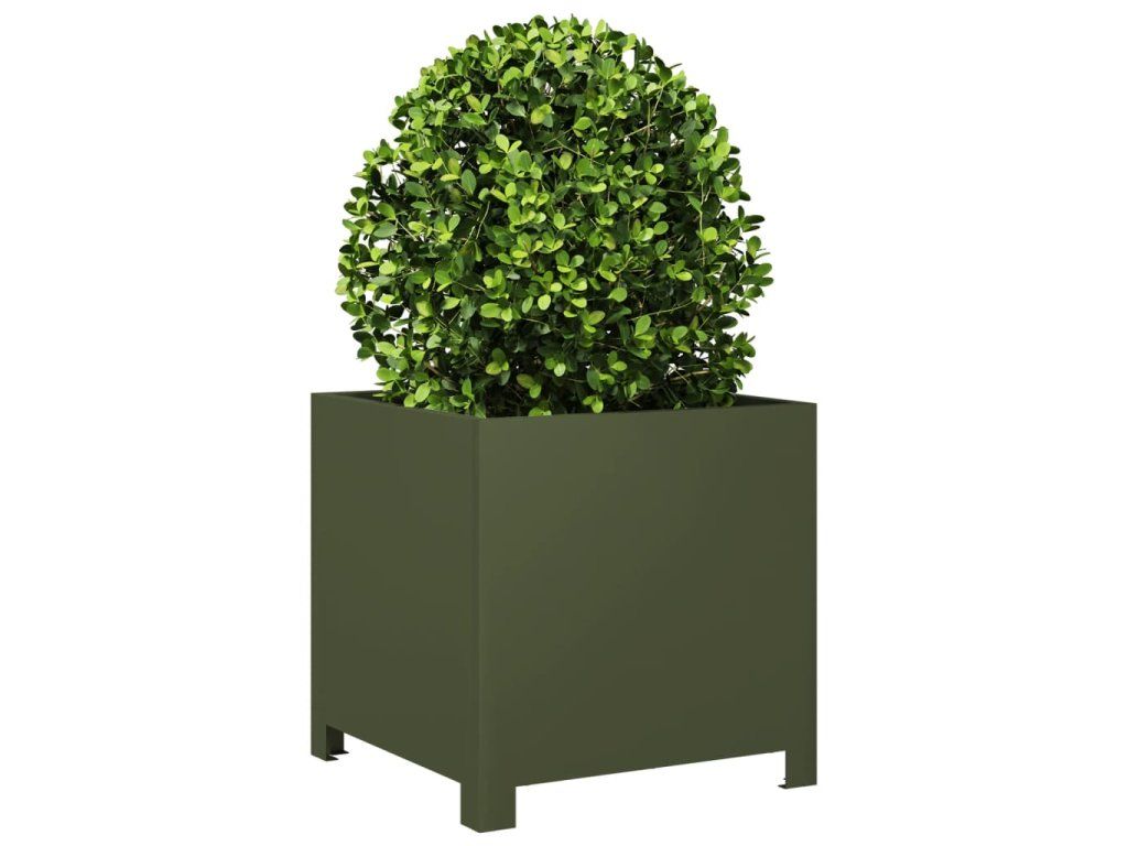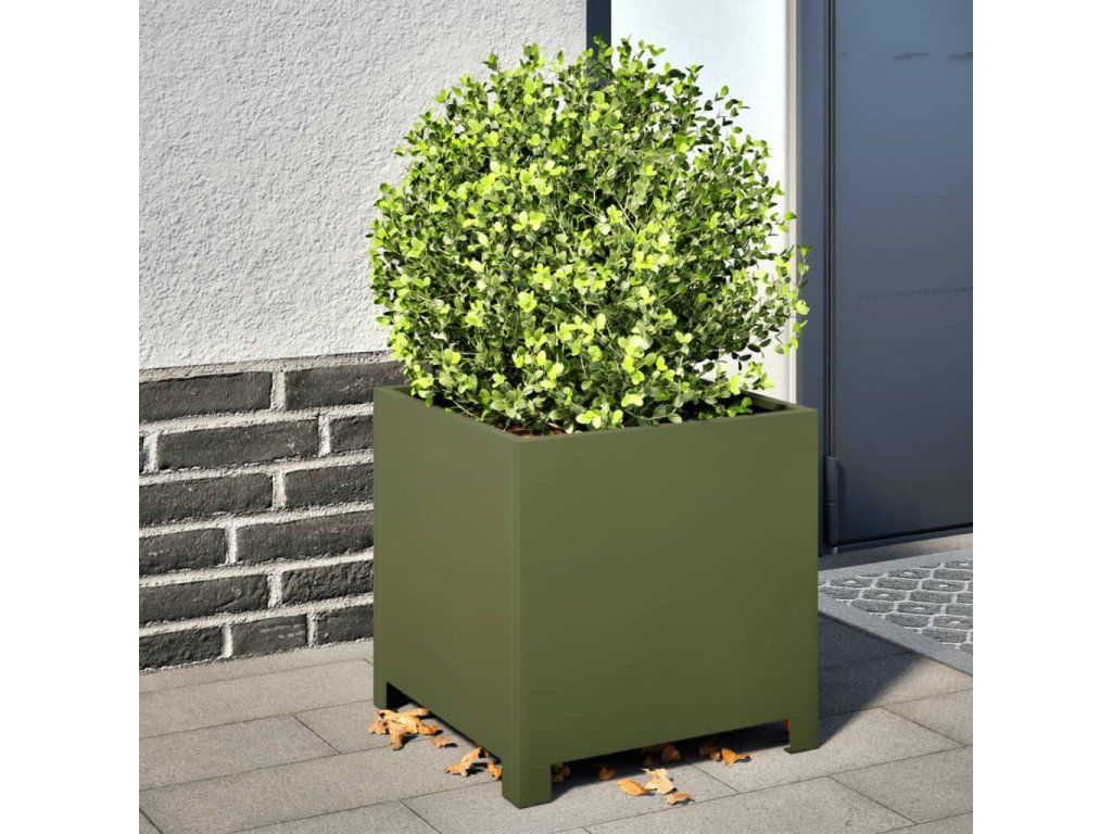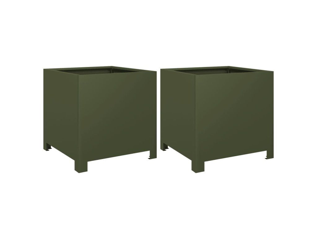 Multidom Záhradné kvetináče 2 ks, olivovo zelené 40x40x40 cm, oceľ
