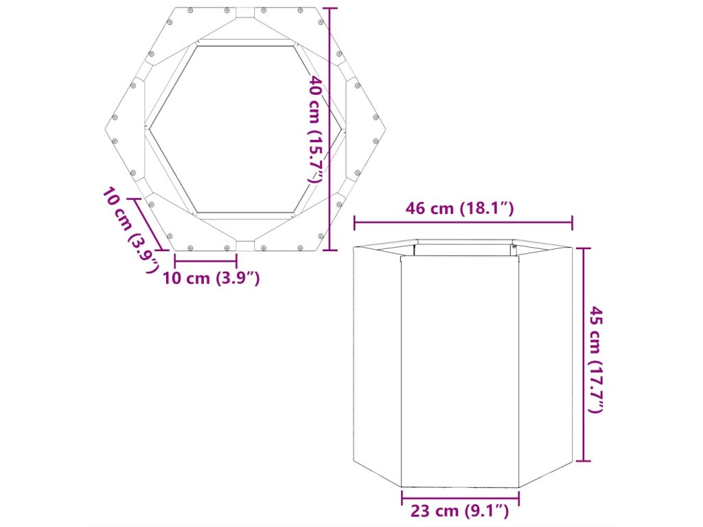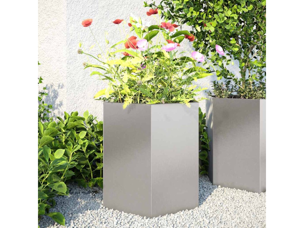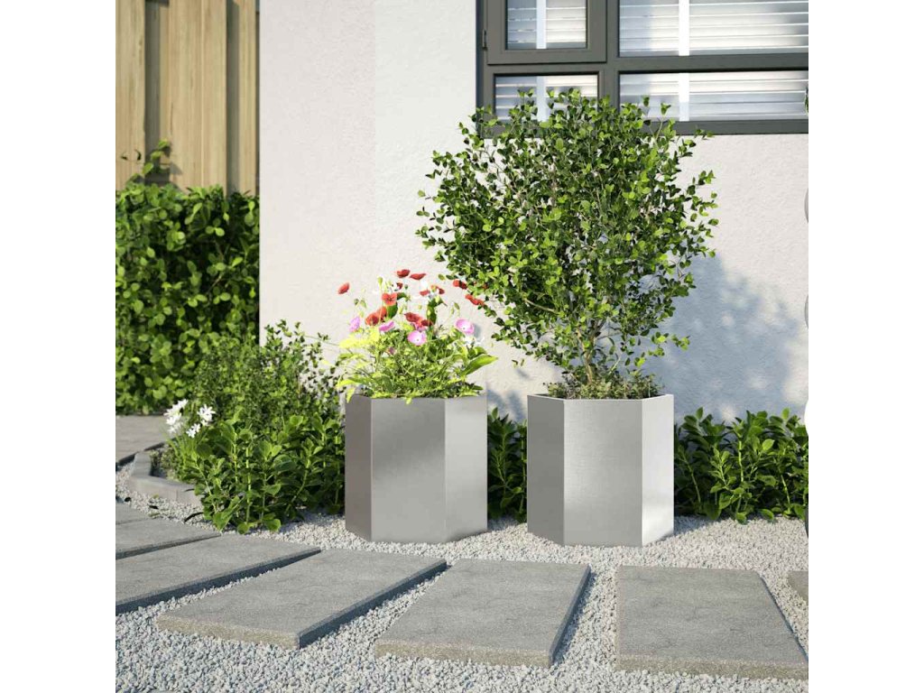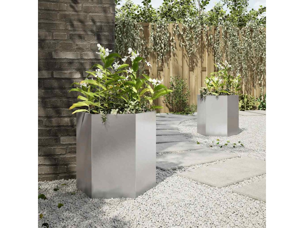 Multidom Záhradné kvetináče 2ks, šesťhran 46x40x45cm, nehrdzavejúca oceľ