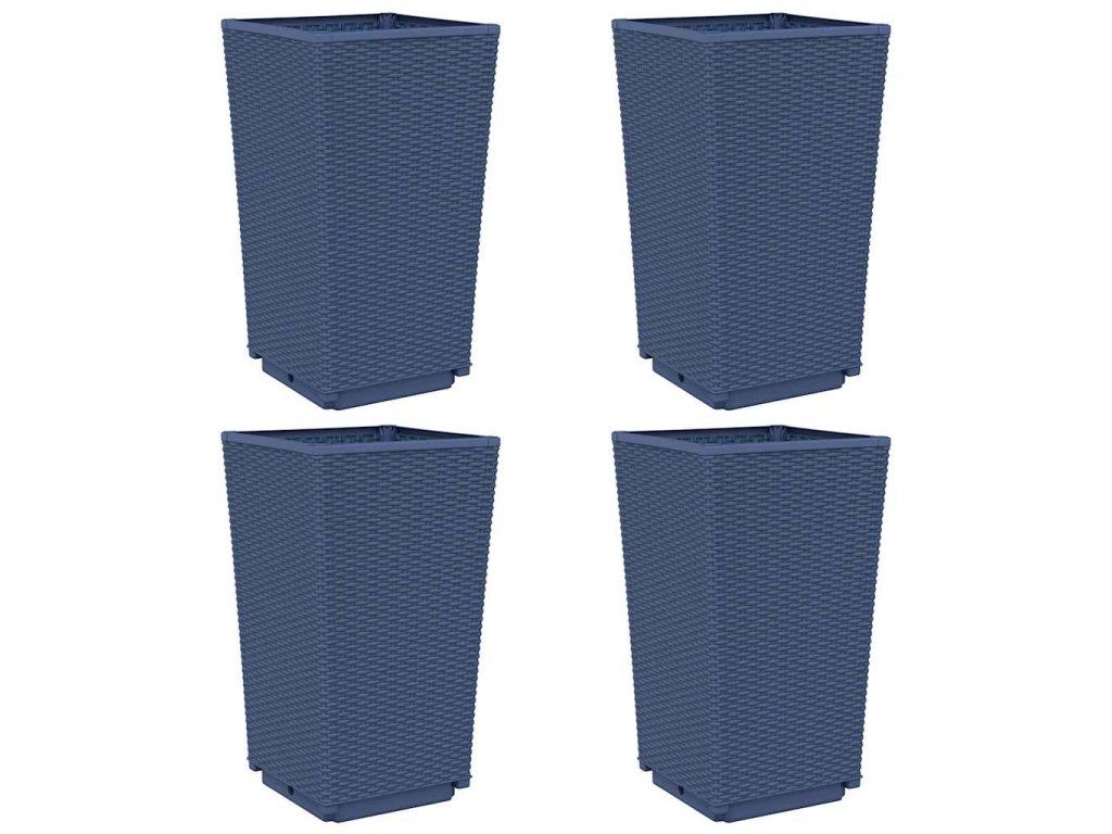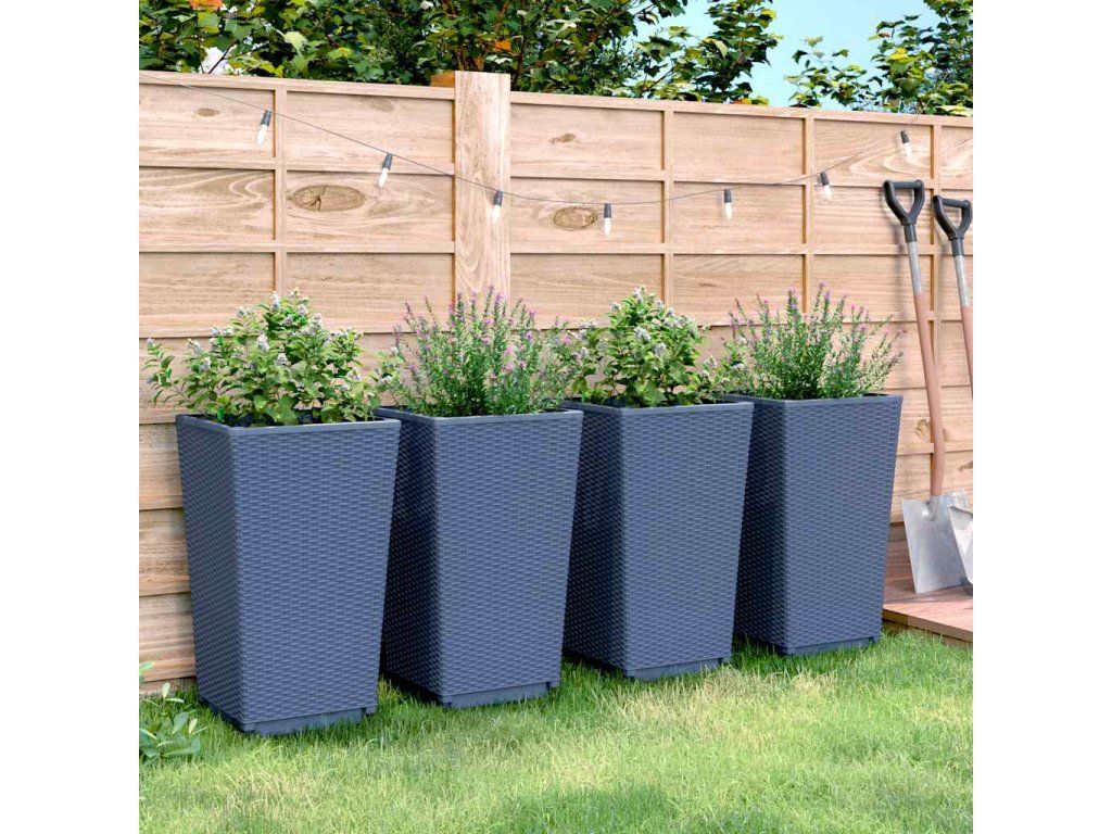 Multidom Záhradné kvetináče 4 ks, modrosivé 32,5x32,5x57 cm, PP
