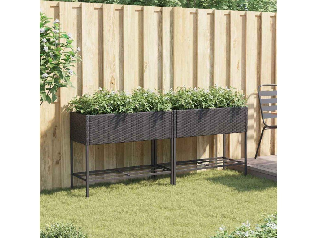 Multidom Záhradné kvetináče s policou 2ks čierne 90x40x75 cm polyratan