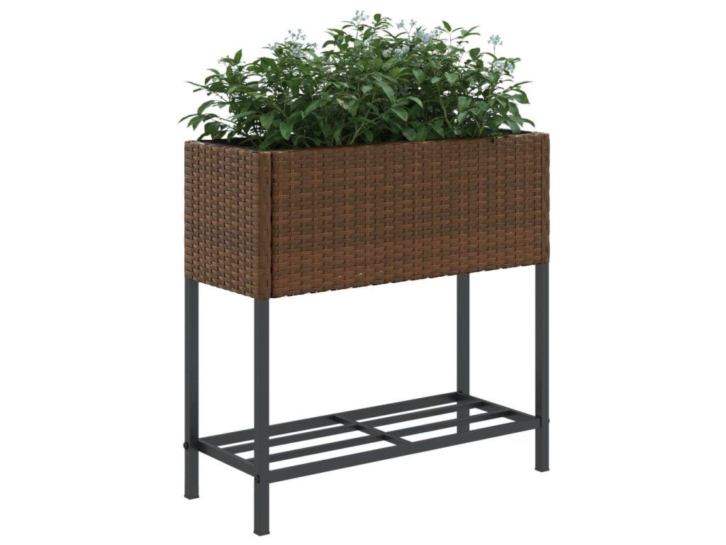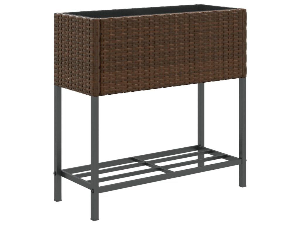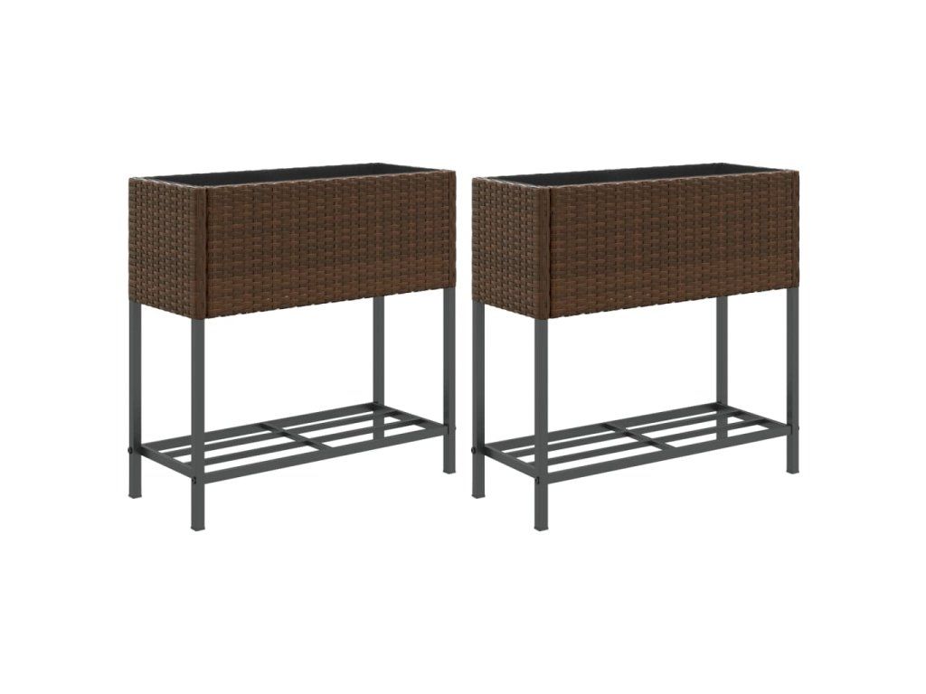 Multidom Záhradné kvetináče s policou 2ks hnedé 70x28x70 cm polyratan