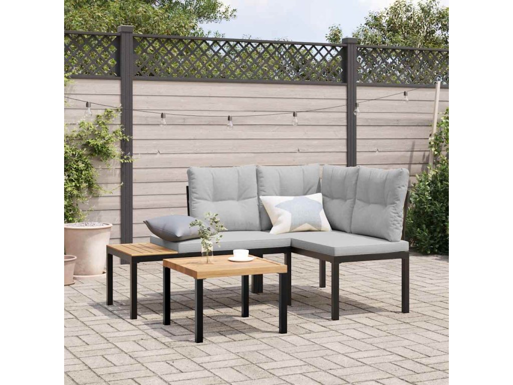 Multidom Záhradné lavičky s vankúšmi 2 ks čierne práškovaná oceľ