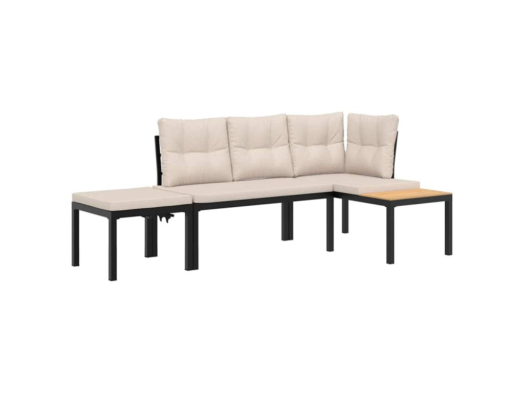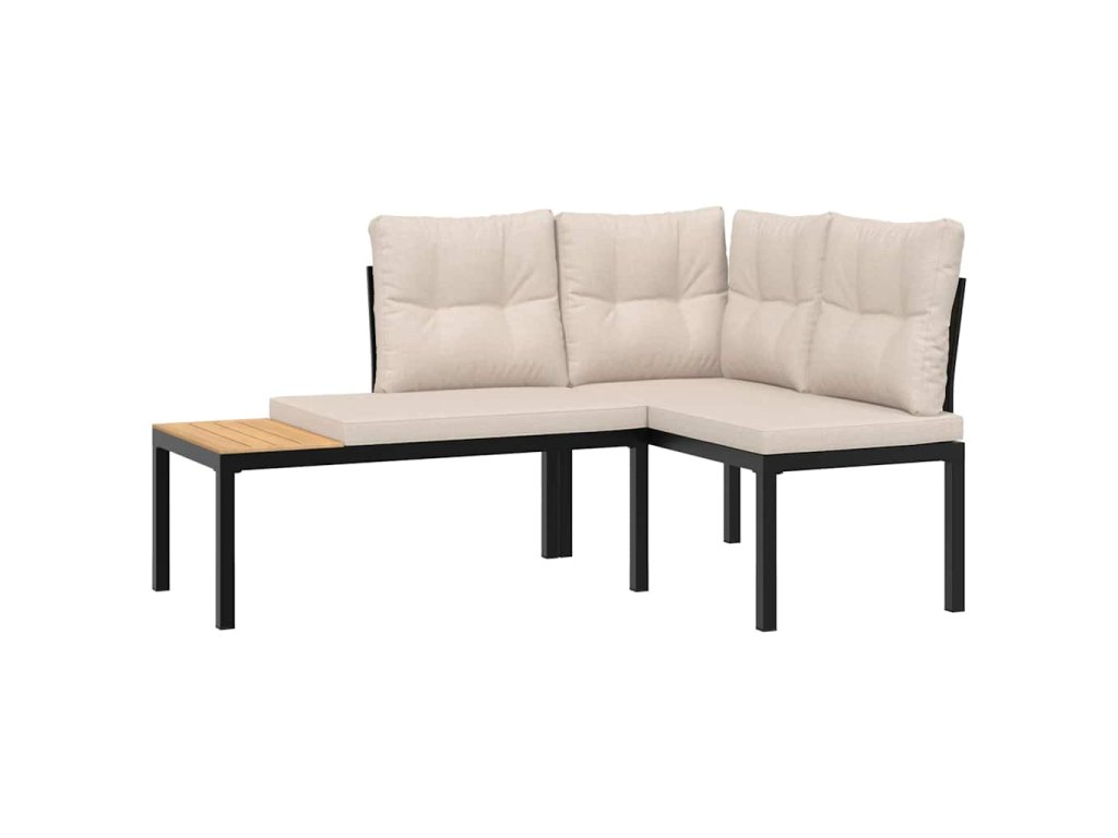 Multidom Záhradné lavičky s vankúšmi 3 ks čierne práškovaná oceľ