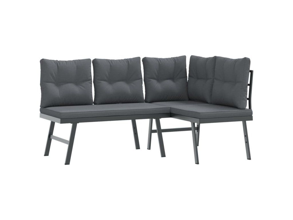 Multidom Záhradné lavičky s vankúšmi 3 ks čierne práškovaná oceľ