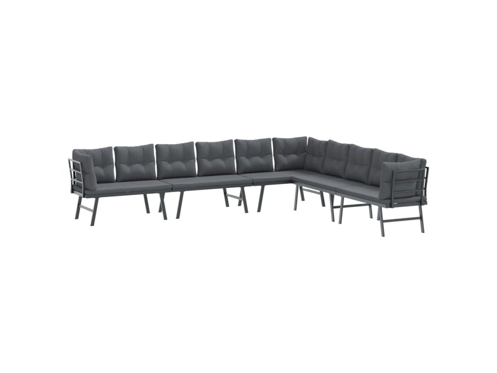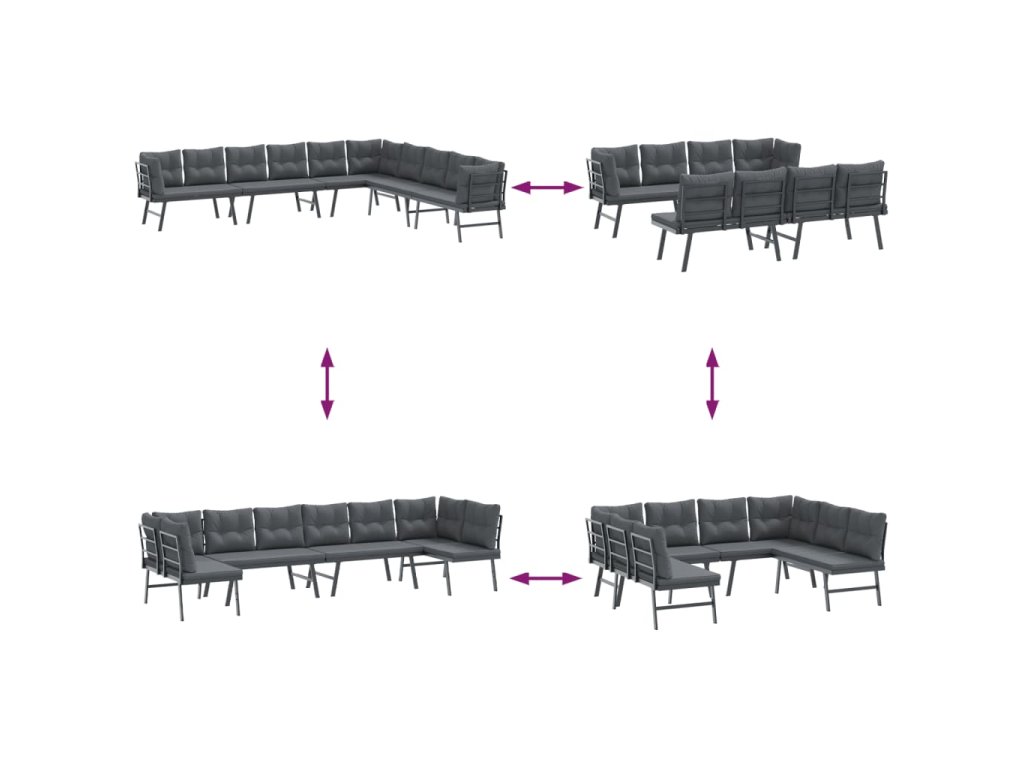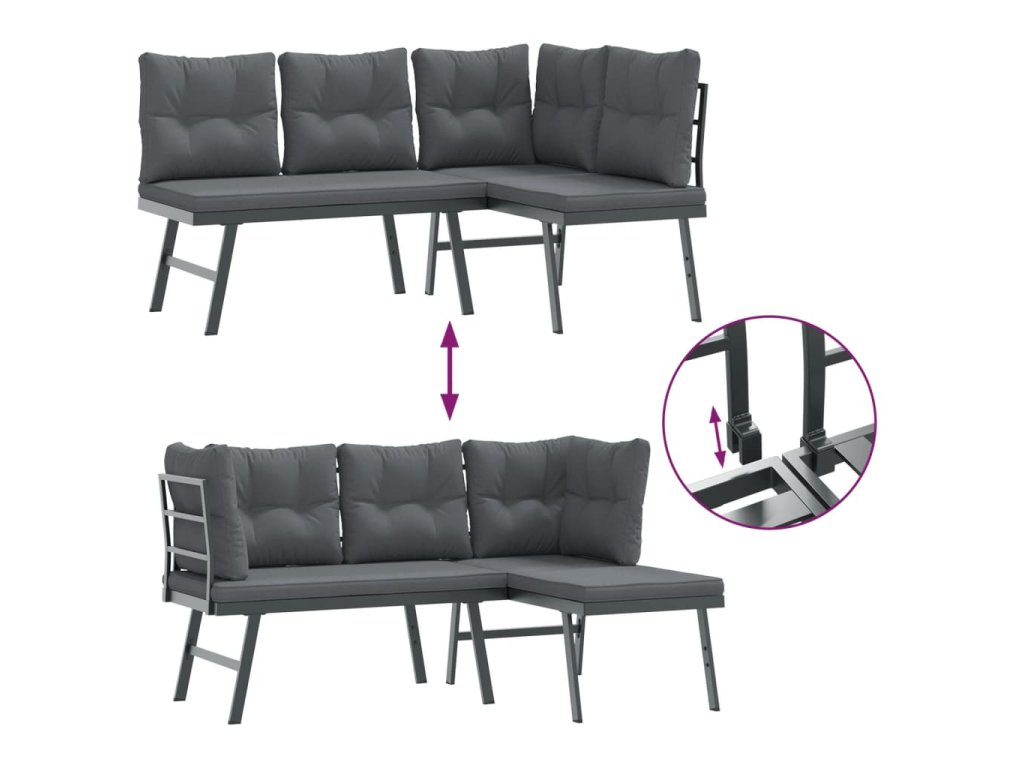 Multidom Záhradné lavičky s vankúšmi 4 ks čierne práškovaná oceľ