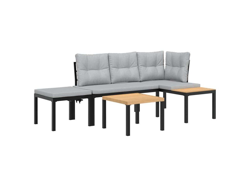 Multidom Záhradné lavičky s vankúšmi 4 ks čierne práškovaná oceľ