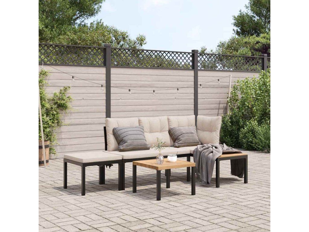 Multidom Záhradné lavičky s vankúšmi 4 ks čierne práškovaná oceľ