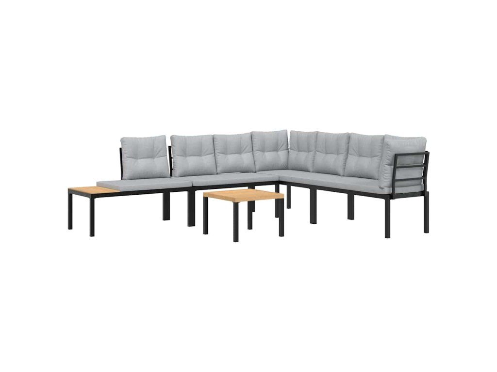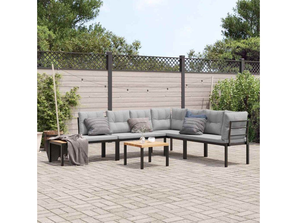 Multidom Záhradné lavičky s vankúšmi 5 ks čierne práškovaná oceľ