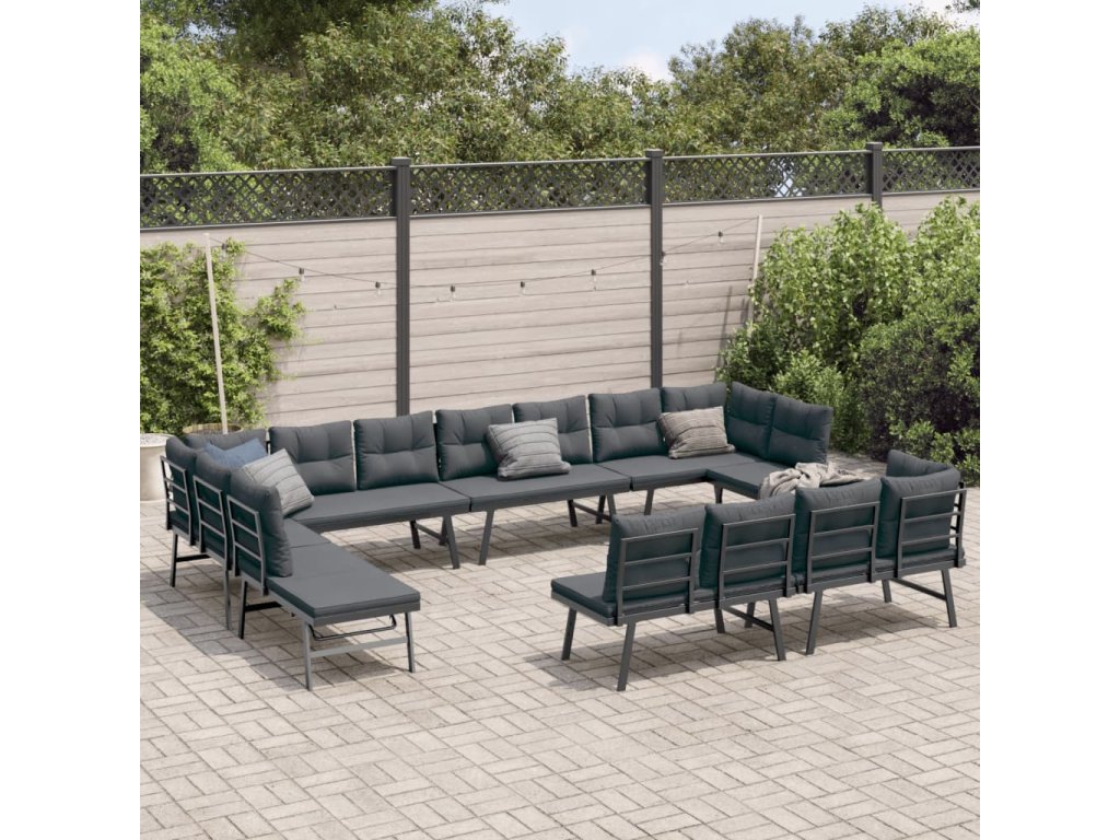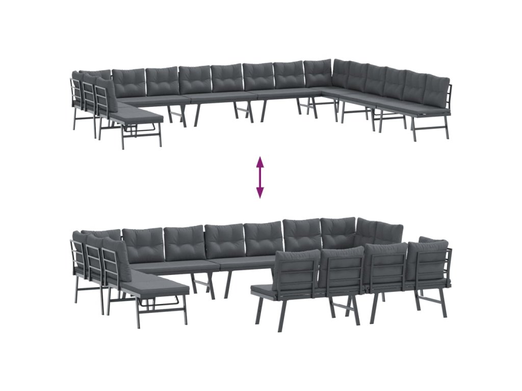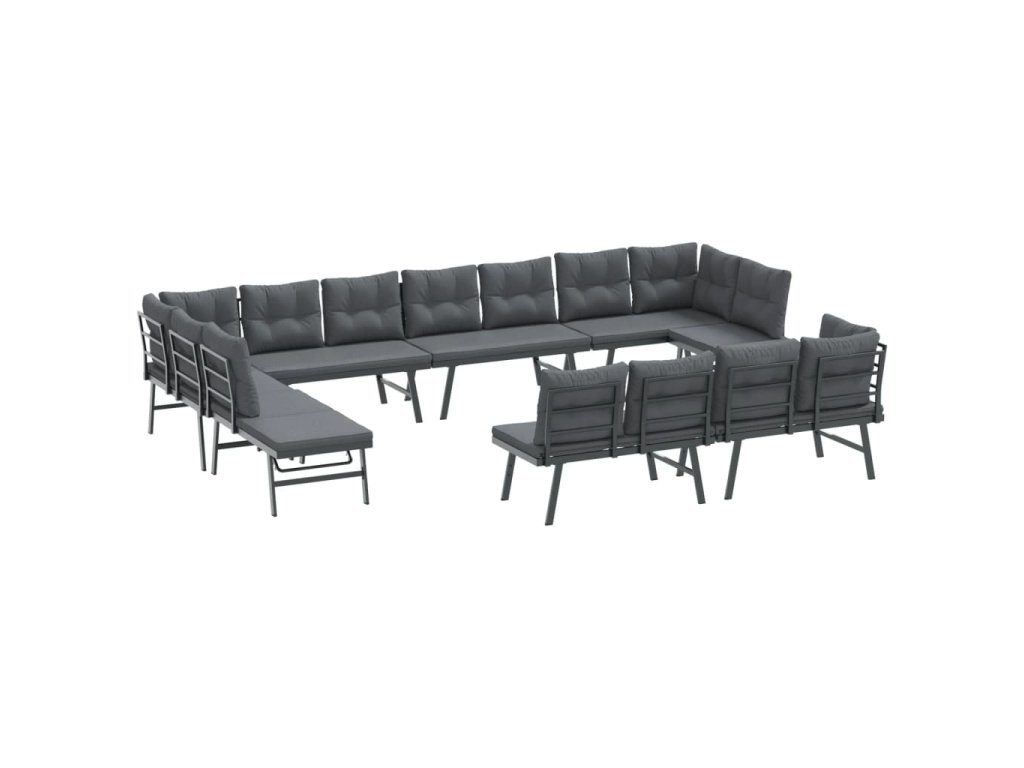 Multidom Záhradné lavičky s vankúšmi 8 ks čierne práškovaná oceľ