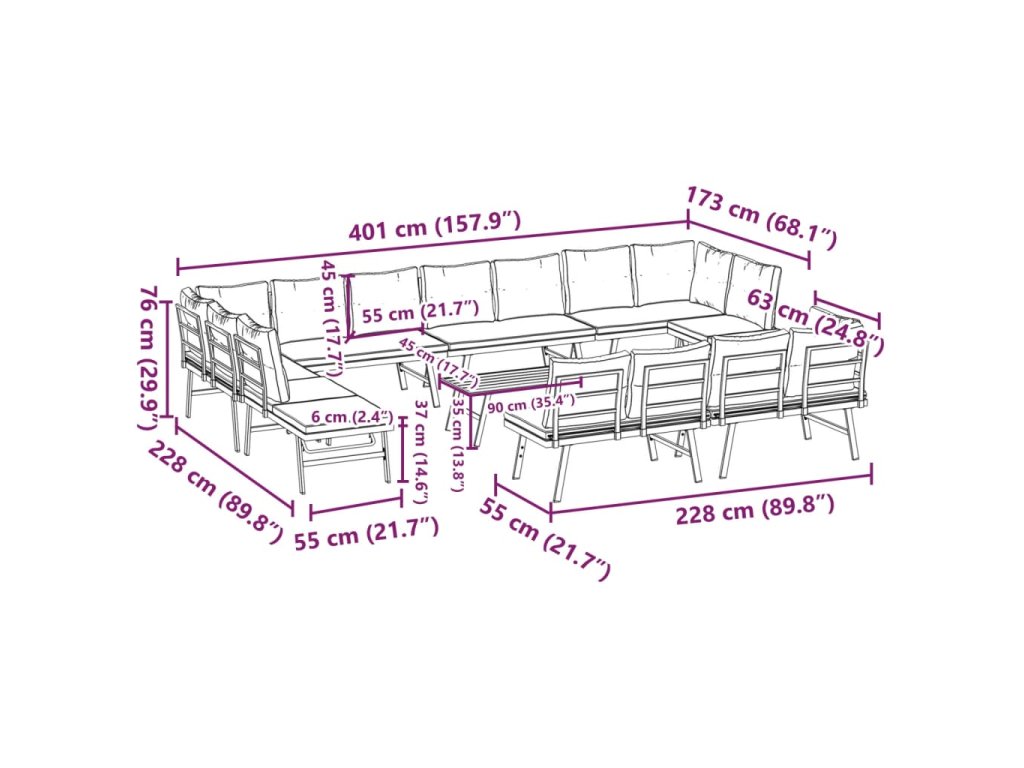 - Rozmery (každý kus): 110 x 63 x 76 cm (Š x H x V)