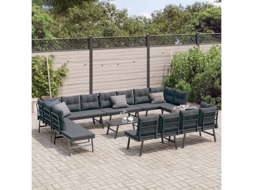 Multidom Záhradné lavičky s vankúšmi 9 ks čierne práškovaná oceľ