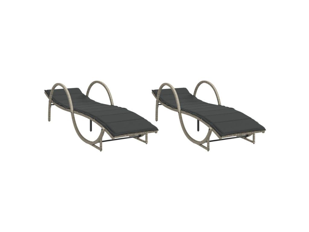 Multidom Záhradné ležadlá 2 ks s vankúšmi svetlosivé polyratan