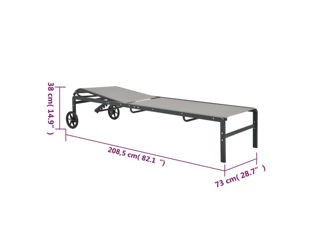 - Rozmery ležadla (s kolieskami): 208,5 x 73 x 38 cm (D x Š x V)