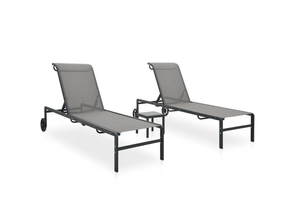 Multidom Záhradné ležadlá 2 ks so stolíkom, textilén a oceľ