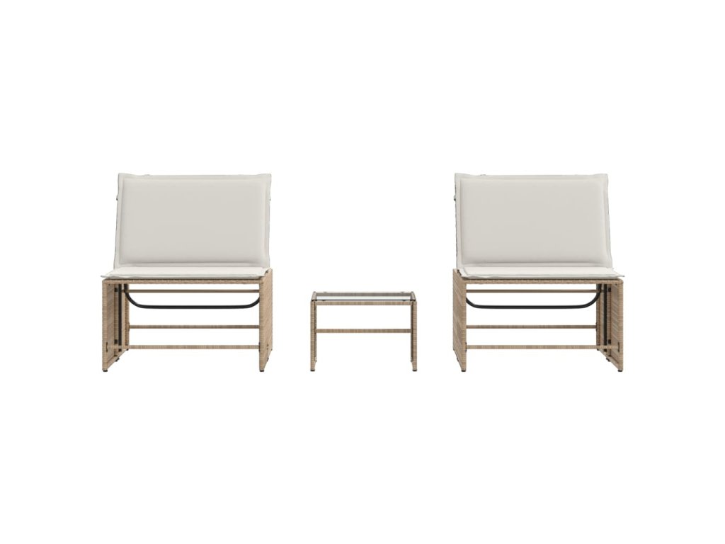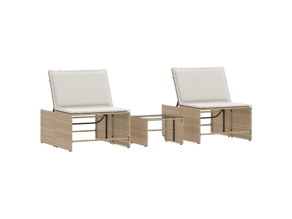 Multidom Záhradné ležadlá 2 ks so stolíkom béžové polyratanové