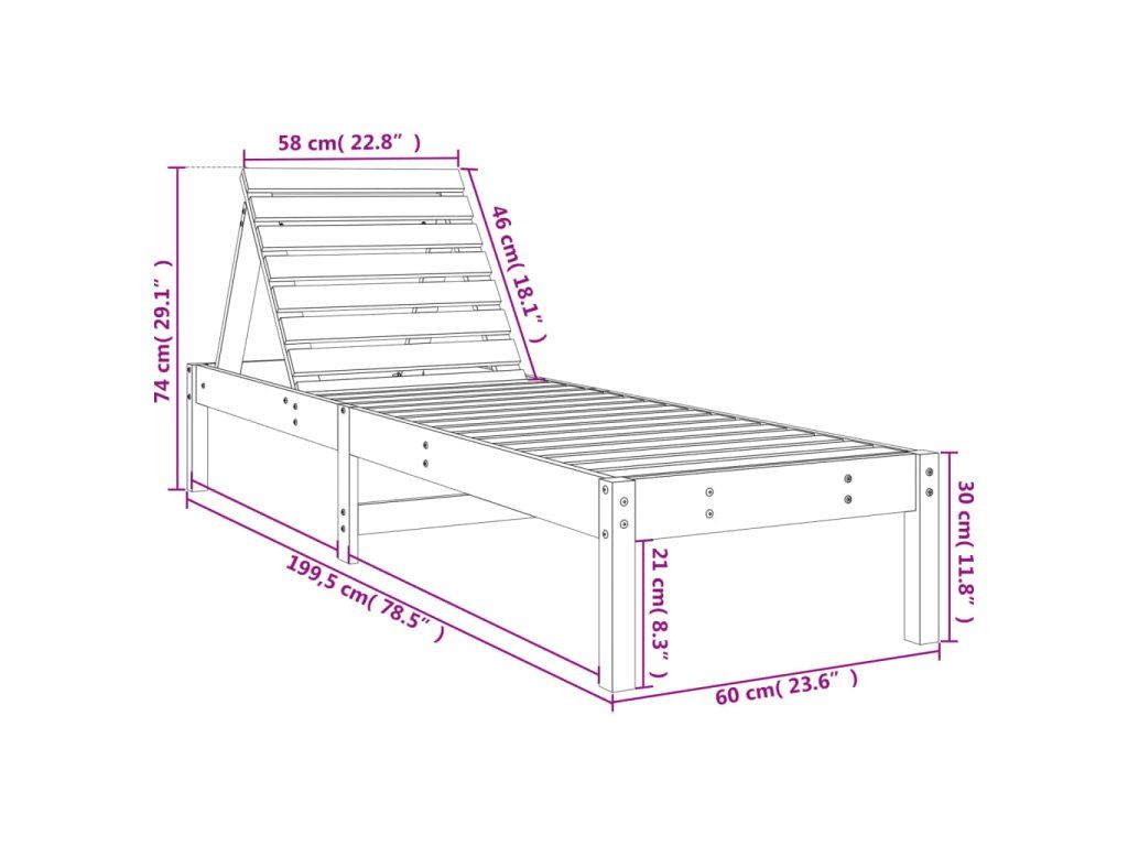 - Masívne borovicové drevo: Súprava ležadiel je vyrobená z masívneho borovicového dreva pre dlhú životnosť. Masívne borovicové drevo je krásny prírodný materiál. Borovicové drevo má rovnú štruktúru a uzly dodávajú materiálu jeho typický rustikálny vzhľad.