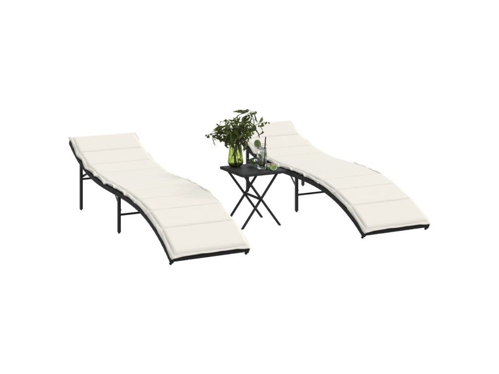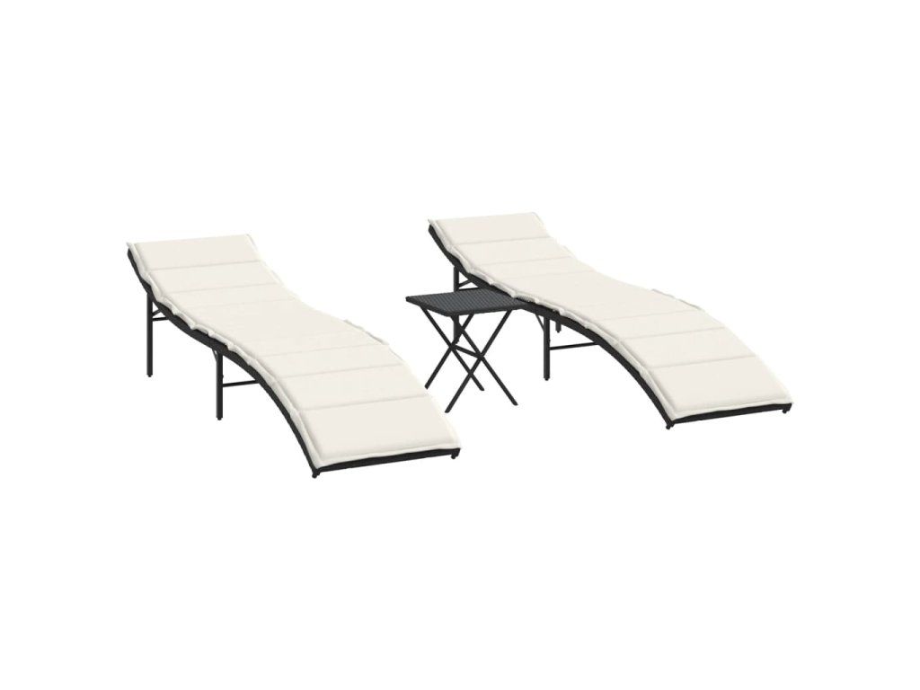 Multidom Záhradné ležadlá 2 ks so stolíkom čierne polyratan