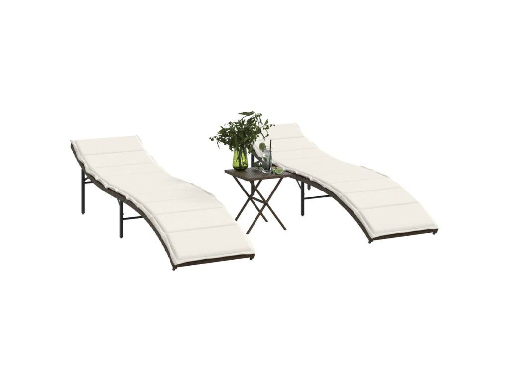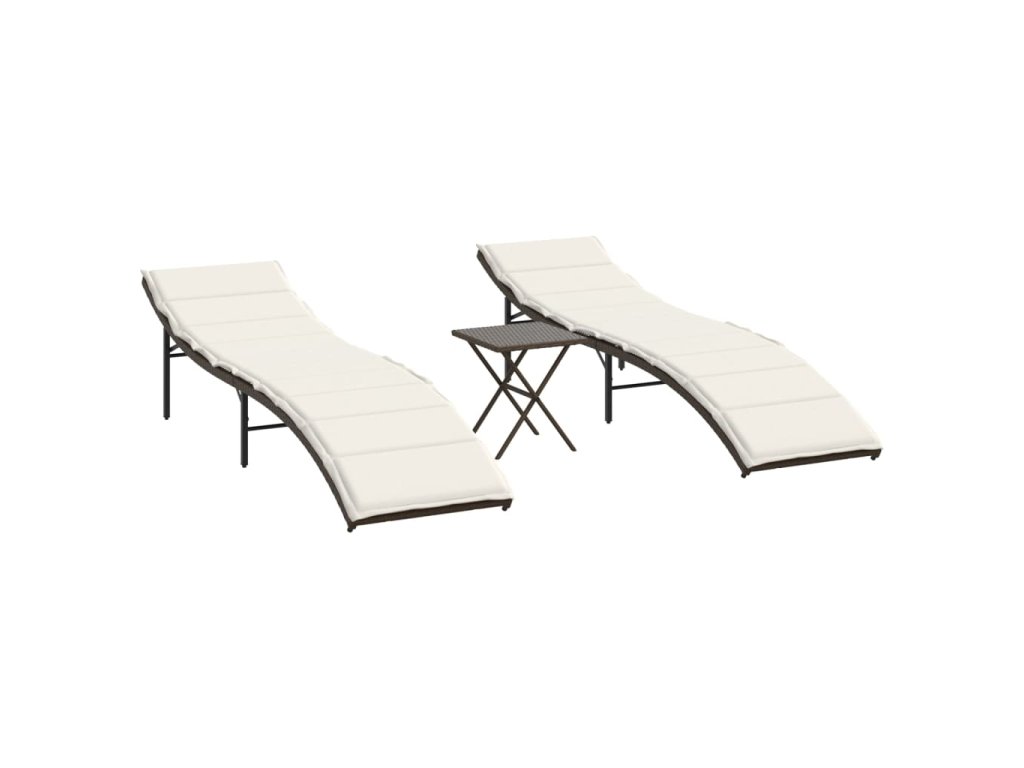 Multidom Záhradné ležadlá 2 ks so stolíkom hnedé polyratan