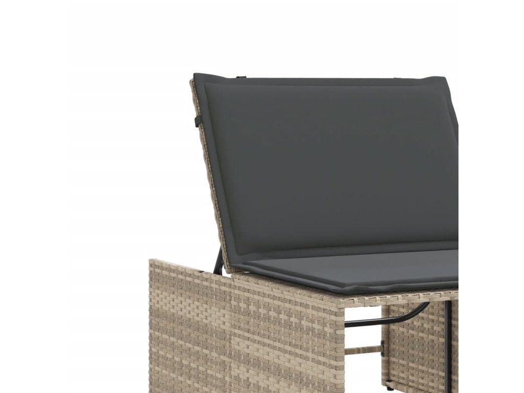 • Všestranné sedenie a oddych: Táto modulárna sada nábytku obsahuje dve základné jednotky, ktoré sa dajú používať samostatne ako dve stoličky so stolom alebo sa dajú bezproblémovo spojiť do jedného plnohodnotného ležadla so stolom. Ideálne pre dve osoby sediace vedľa seba alebo pre jednu osobu pohodlne sa oddychujúcu. Navyše, hrubo polstrované vankúše poskytujú výnimočné pohodlie pri sedení aj ležaní.