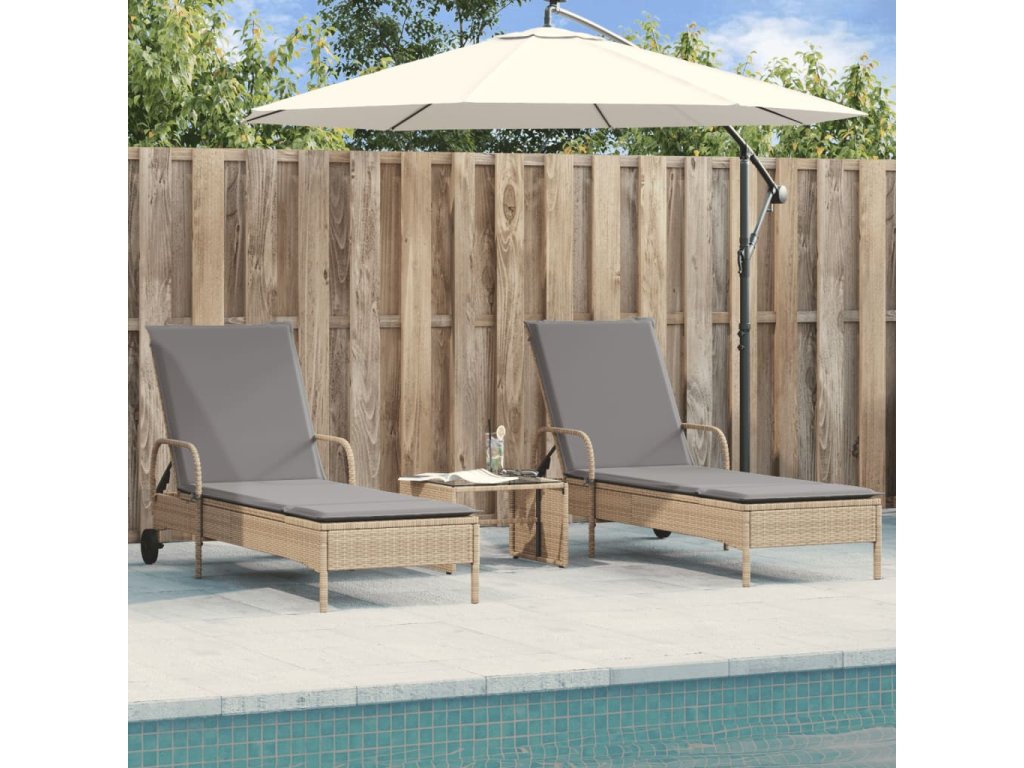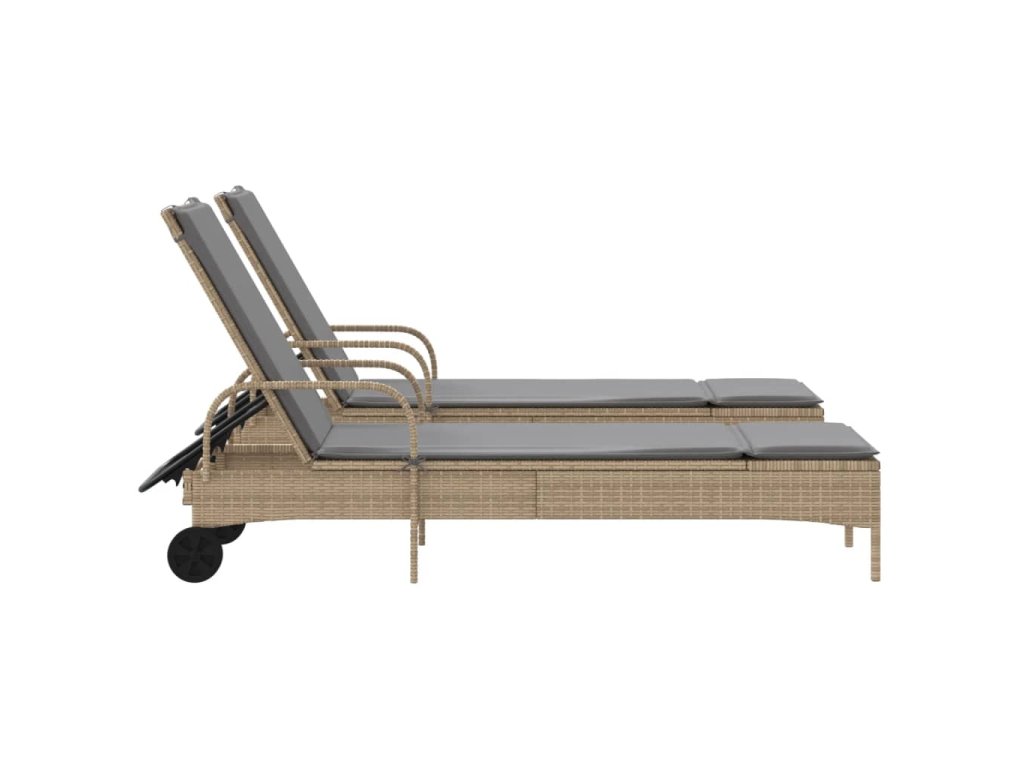 Multidom Záhradné ležadlá s vankúšmi 2 ks béžové polyratan