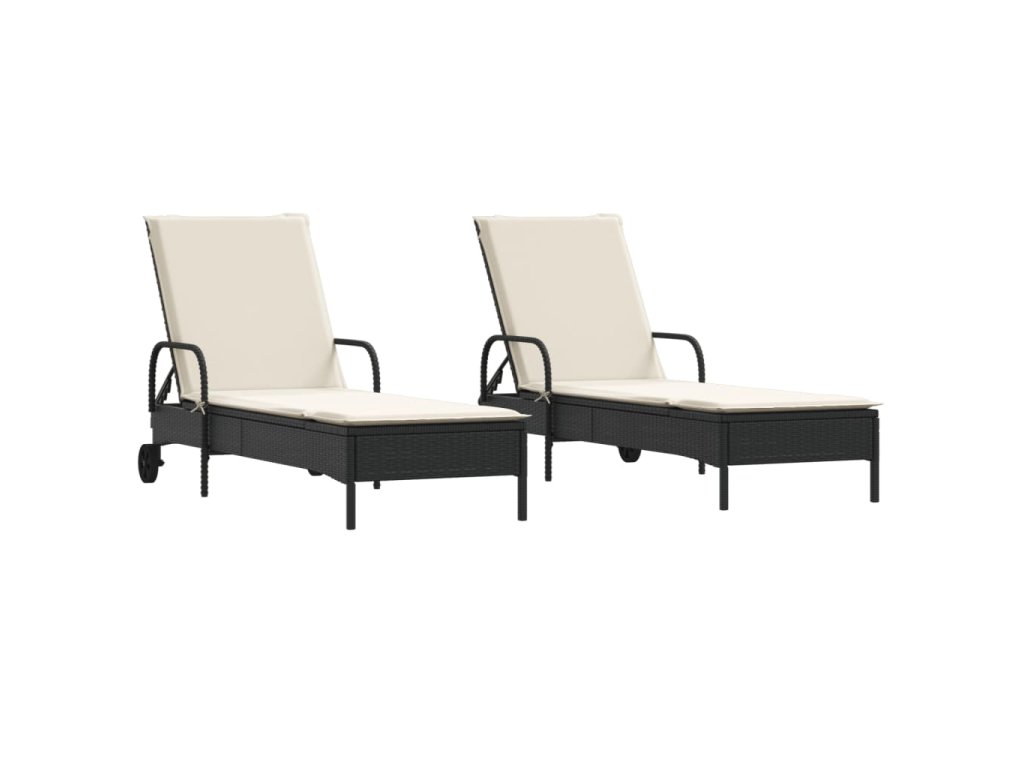 Multidom Záhradné ležadlá s vankúšmi 2 ks čierne polyratan