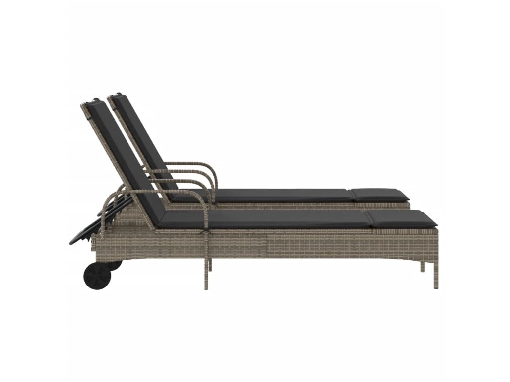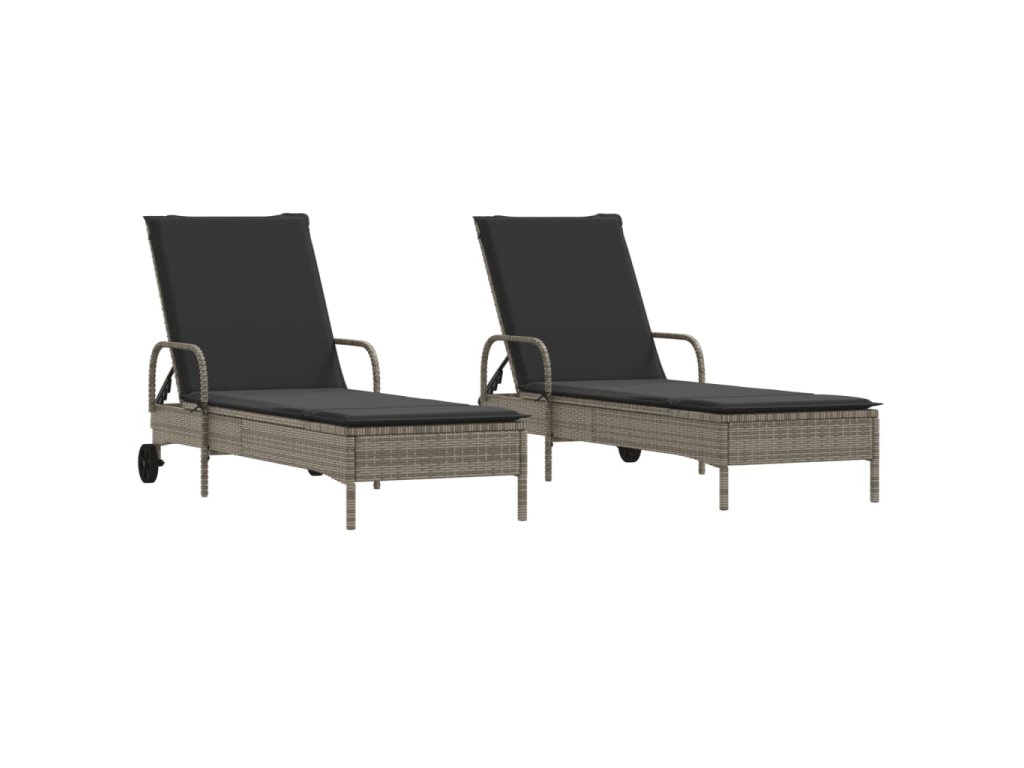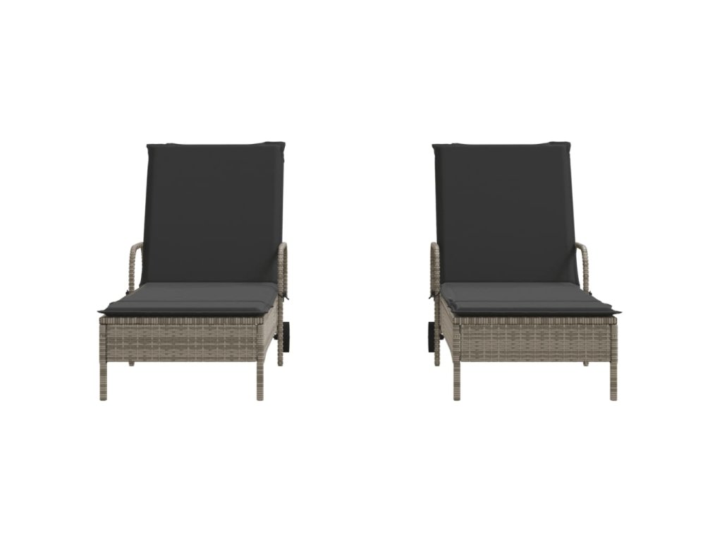 Multidom Záhradné ležadlá s vankúšmi 2 ks sivé polyratan