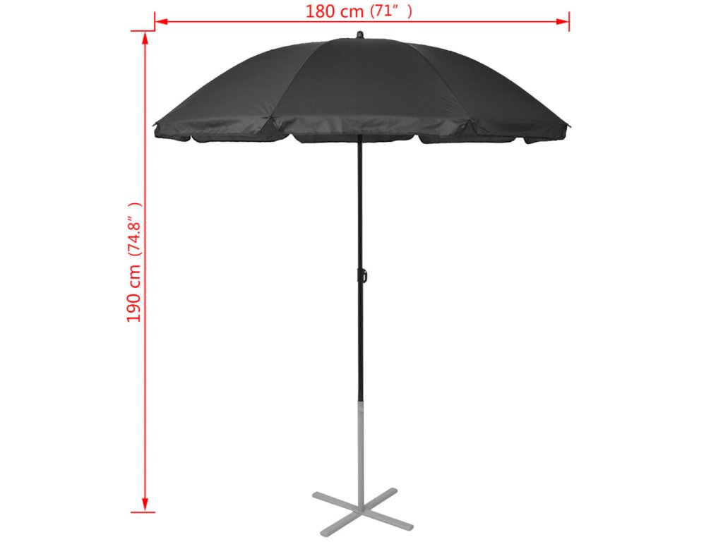 Slnečník má robustný oceľový rám s práškovou povrchovou úpravou, veľkú striešku odolnú voči UV žiareniu a stabilný podstavec v tvare kríža. Poskytne vám ideálnu ochranu pred UV lúčmi a zrážkami počas pohodových posedení s rodinou v záhrade či na terase.