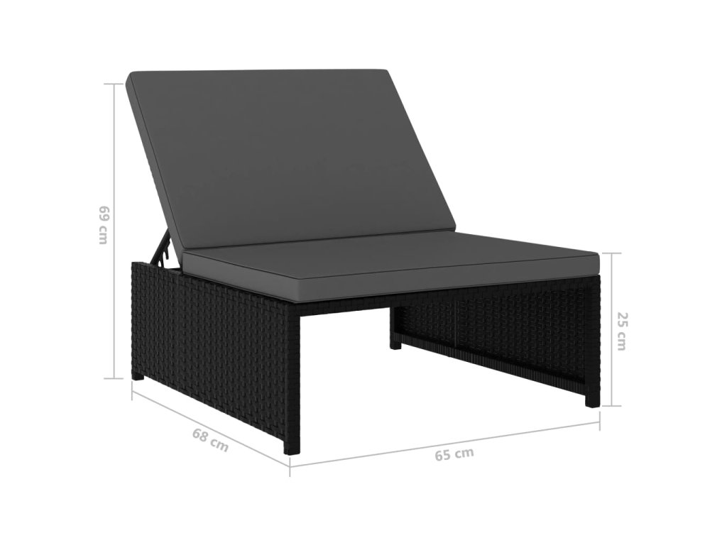 Multidom Záhradné ležadlá so stolíkom 2 ks čierne polyratanové