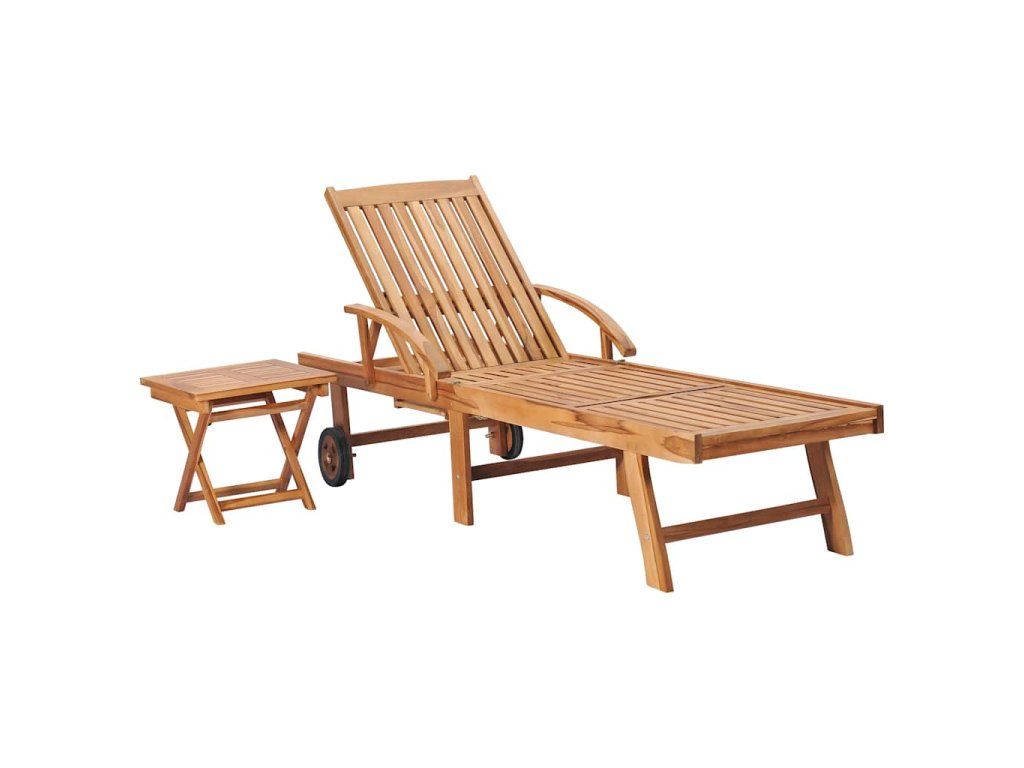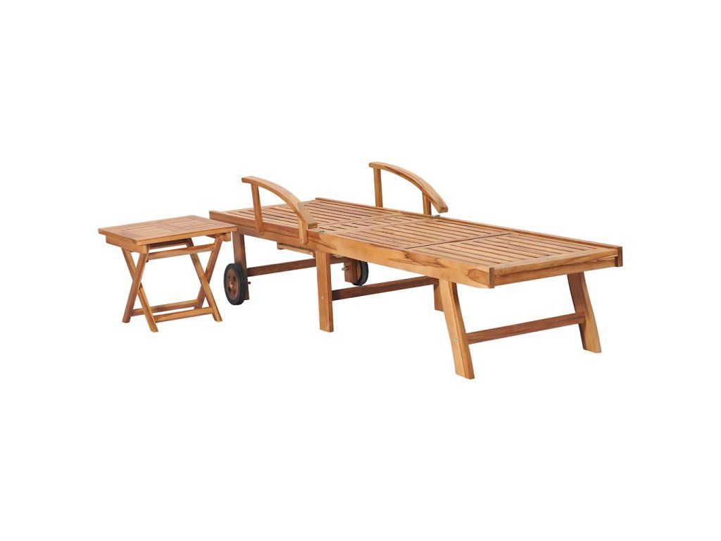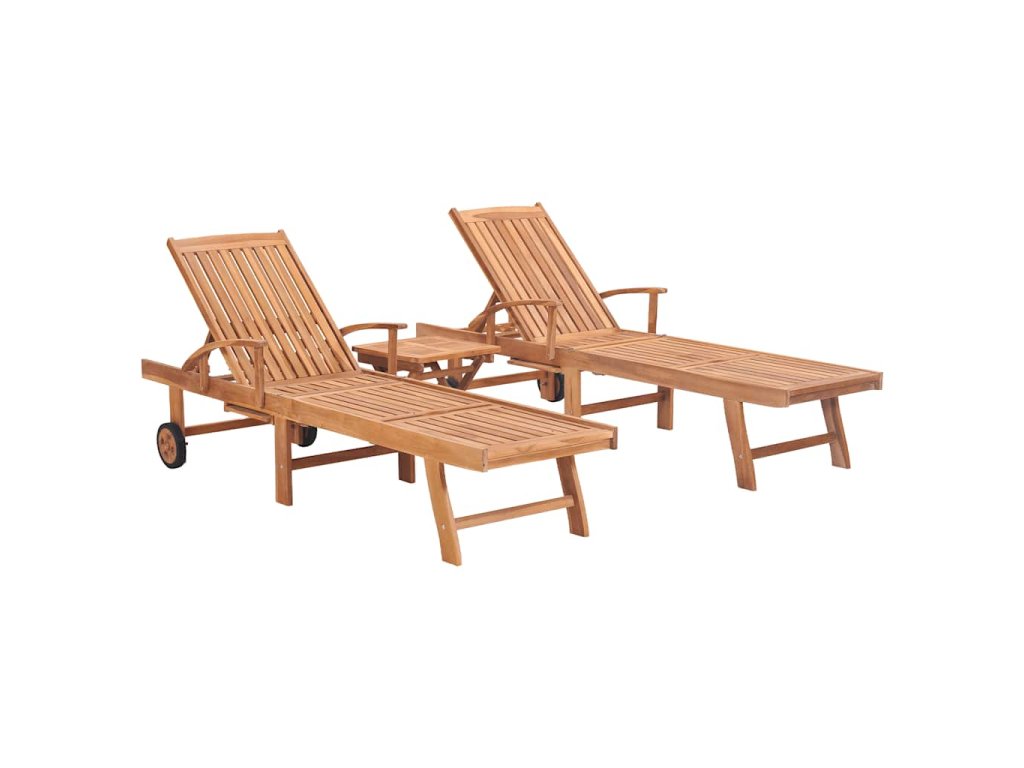 Multidom Záhradné ležadlá so stolíkom 2 ks teakový masív
