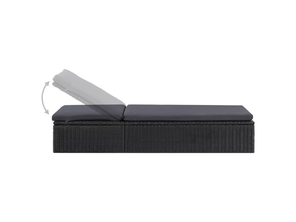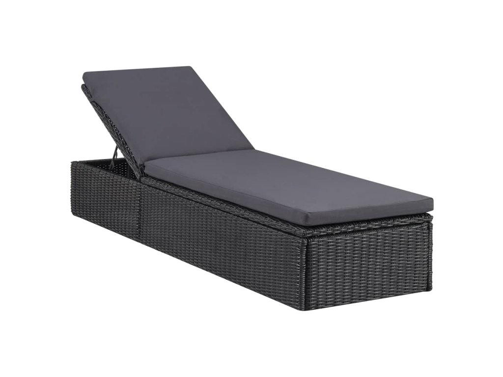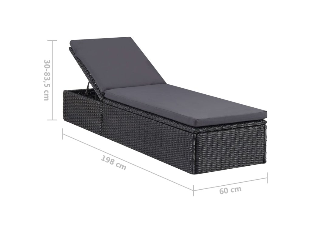 Multidom Záhradné ležadlo, polyratan, čierna a tmavosivá