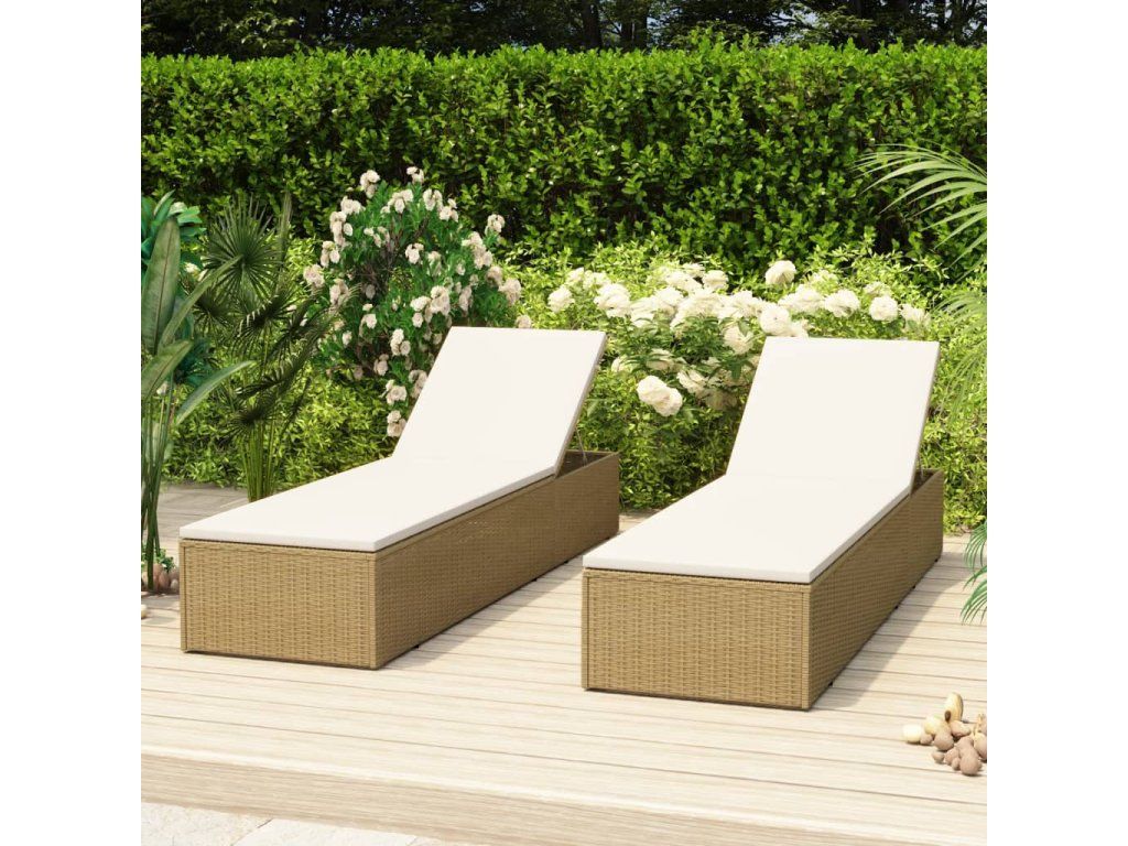 Multidom Záhradné ležadlo, polyratan, hnedá a krémovo biela