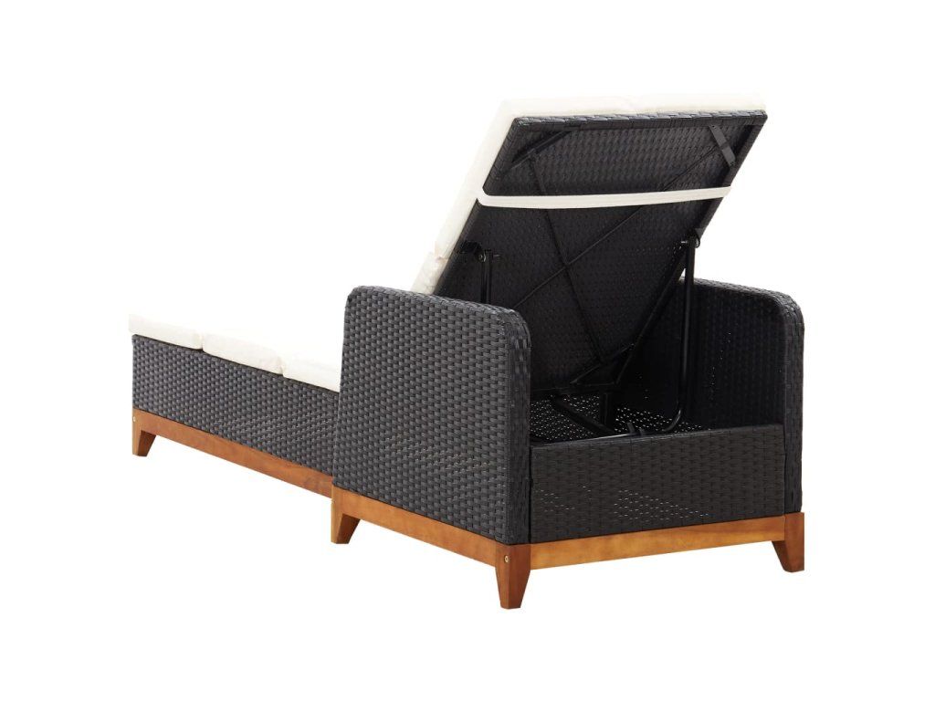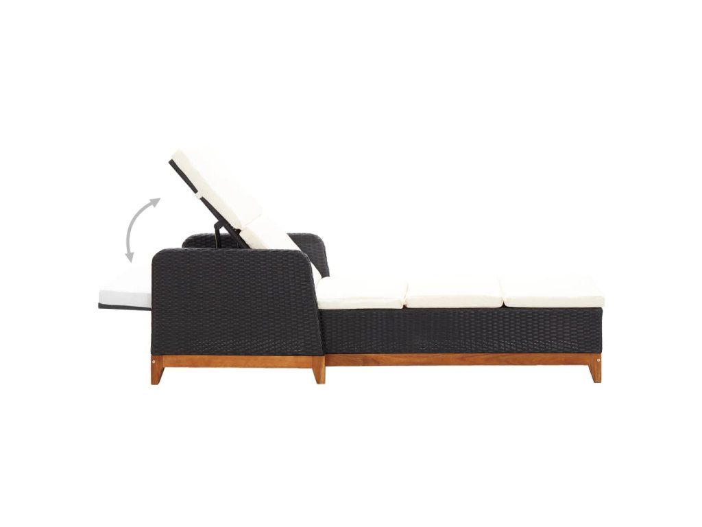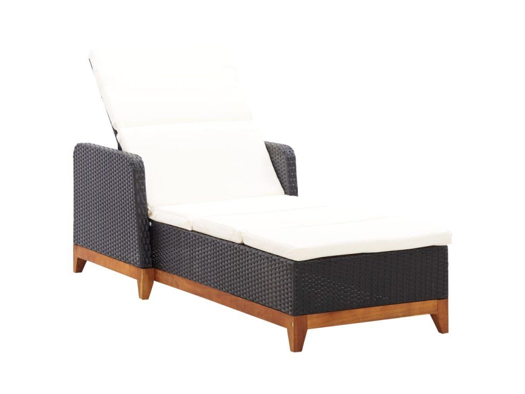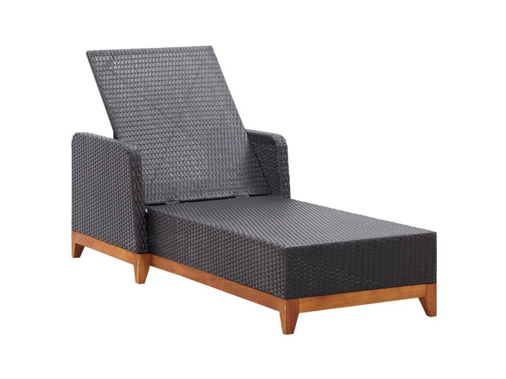 Multidom Záhradné ležadlo, polyratan a akáciový masív, čierne