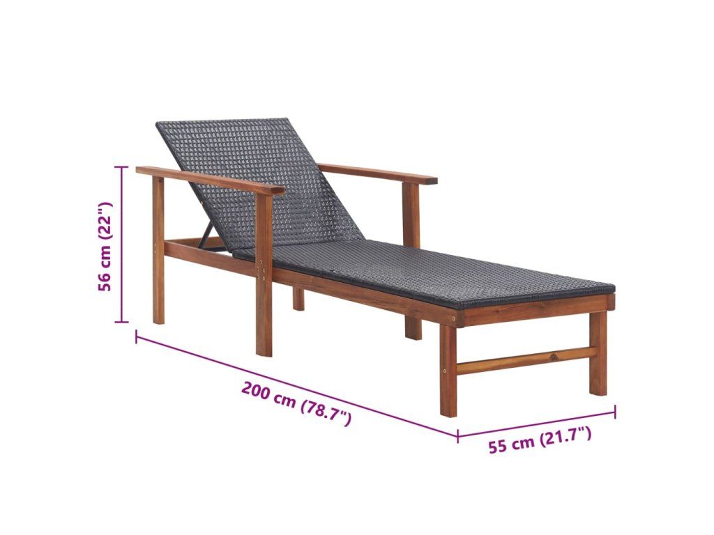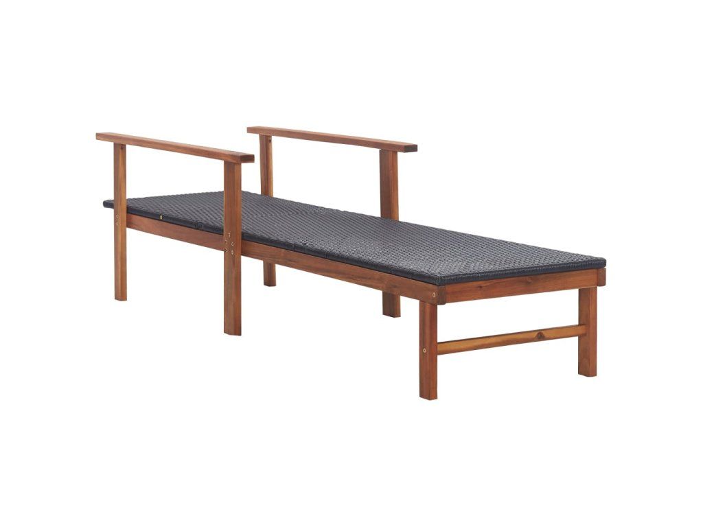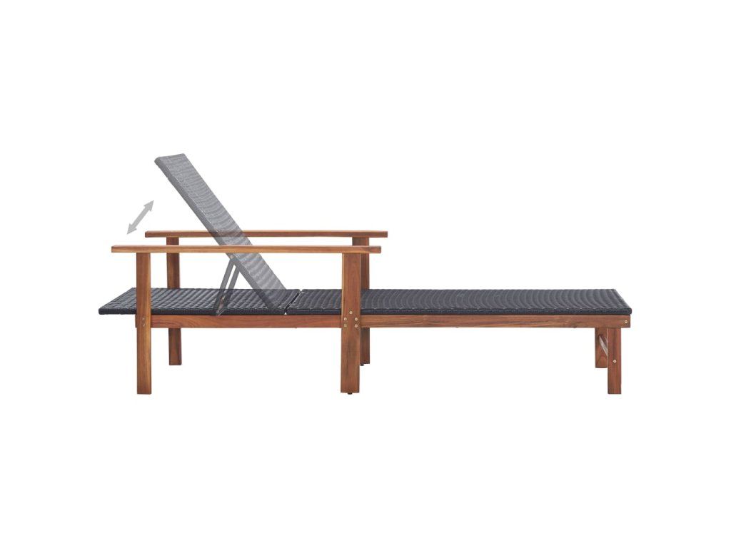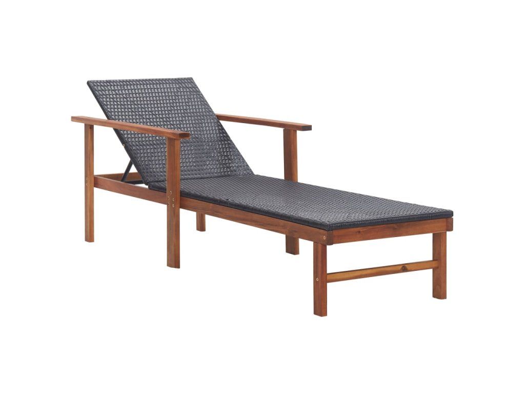 Multidom Záhradné ležadlo čierne polyratan a akáciový masív