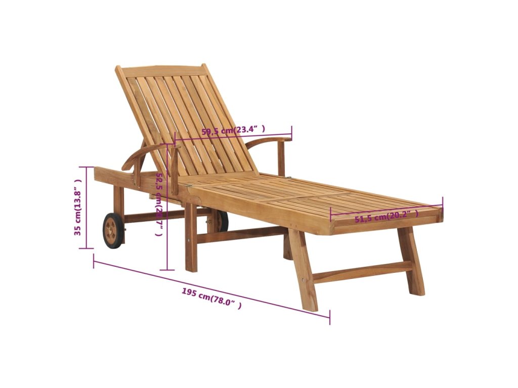Ležadlo je vyrobené z mimoriadne trvácneho tvrdého teakového dreva, ktoré bolo umelo vysušené v sušiarni a jeho povrch bol následne jemne obrúsený, aby získal hladký vzhľad. Teakové drevo sa vyznačuje výnimočnou pevnosťou a odolnosťou voči poveternostným vplyvom, a tak predstavuje jeden z najvhodnejších materiálov na výrobu záhradného nábytku spomedzi všetkých ostatných druhov dreva. Ak si chcete zaobstarať záhradný nábytok, ktorý vám bude slúžiť dlhé roky, teakové drevo je pre vás ako stvorené. Lehátko je vybavené 2 kolieskami a dá sa ľahko premiestňovať.