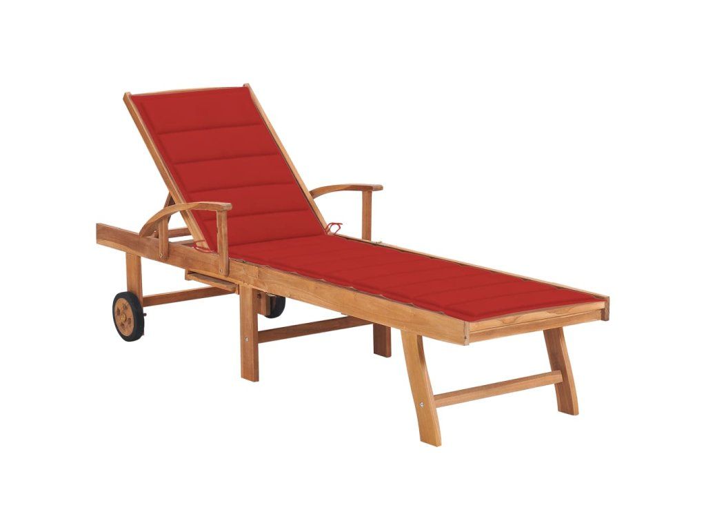 Multidom Záhradné ležadlo s červenou podložkou tíkový masív