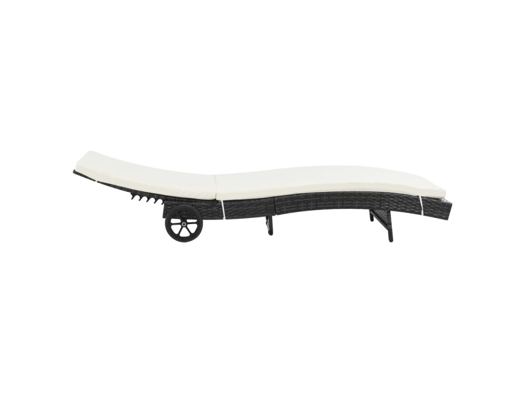Multidom Záhradné ležadlo s kolieskami a podložkou, polyratan, čierne