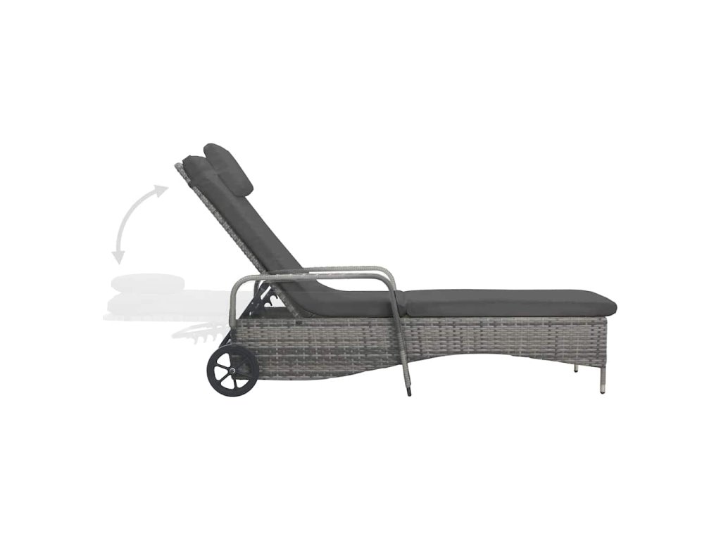 Multidom Záhradné ležadlo s kolieskami antracitové polyratanové