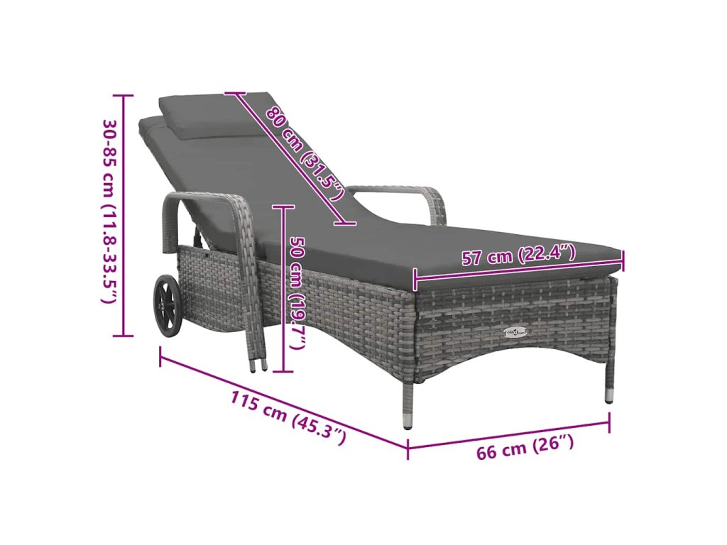 Naše ratanové záhradné ležadlo s nastaviteľným operadlom a 2 kolieskami je ideálnou voľbou pre úplný odpočinok a užívanie si pekného počasia na záhrade, terase alebo pri bazéne.