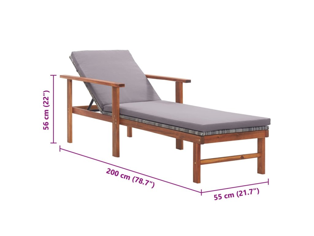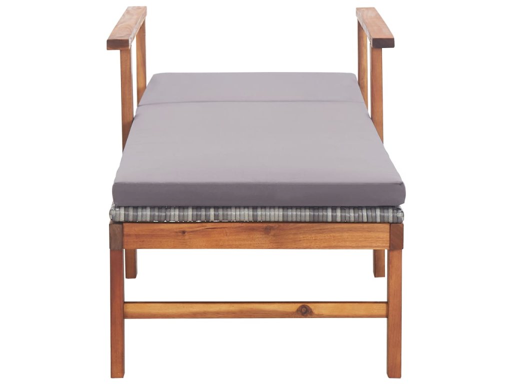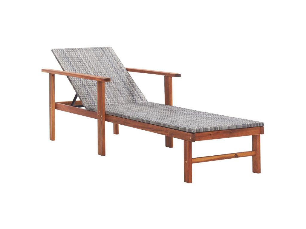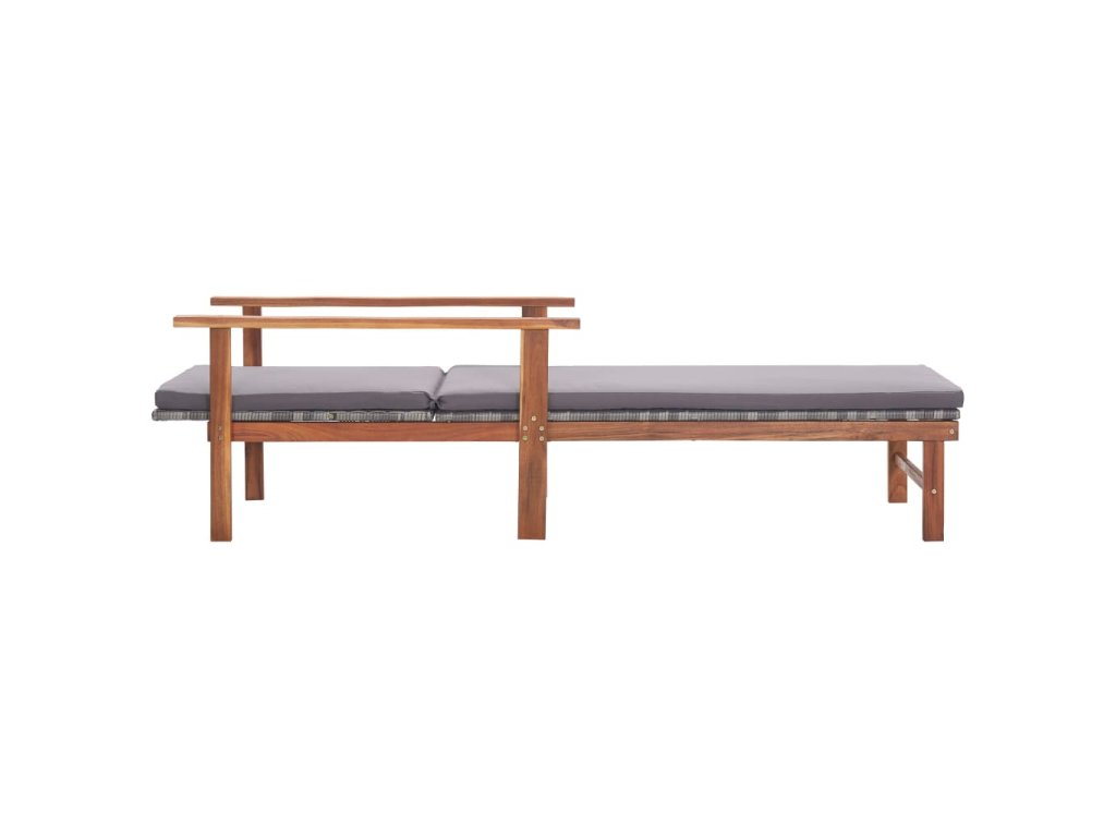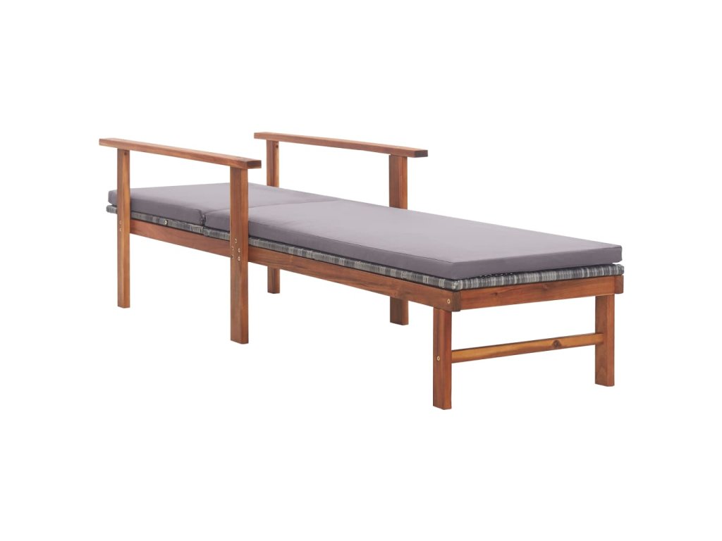 Multidom Záhradné ležadlo s podložkou, polyratan a akáciový masív, sivé