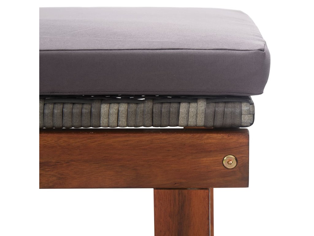 Sedadlo a operadlo sú vyrobené z PE ratanu, ktorý je odolný voči poveternostným vplyvom, a tak sa toto ležadlo dá ľahko očistiť, je odolné a vhodné na každodenné používanie v exteriéri. Rám vyrobený z akáciového dreva je dostatočne stabilný a nevyžaduje si náročnú údržbu. Ležadlo sa navyše dodáva s podložkami, ktoré poskytujú optimálny komfort.