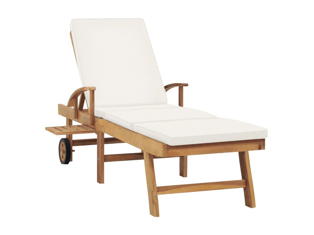 Multidom Záhradné ležadlo s podložkou, tíkový masív, krémové