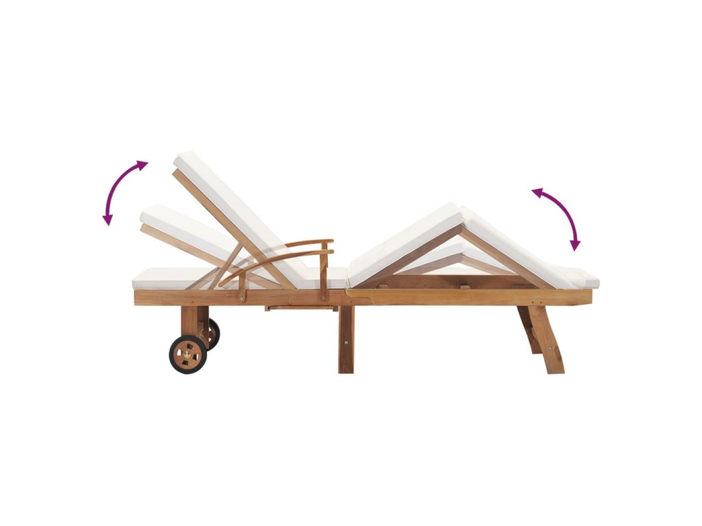 Krásna povrchová úprava drevu dodáva teplý farebný odtieň. Záhradné ležadlo má 2 kolieska, takže sa dá ľahko presúvať. Vďaka podložke, ktorá je súčasťou balenia, sa vám na ňom bude ležať naozaj pohodlne. Ležadlo je vybavené aj praktickým vysúvacím stolíkom, na ktorý si môžete odložiť telefón, okuliare, nápoje či iné drobnosti, ktoré chcete mať poruke. Operadlo sa dá nastaviť do 3 polôh, od zvislej polohy až po úplne vodorovnú. Nastaviteľná je aj opierka na nohy.