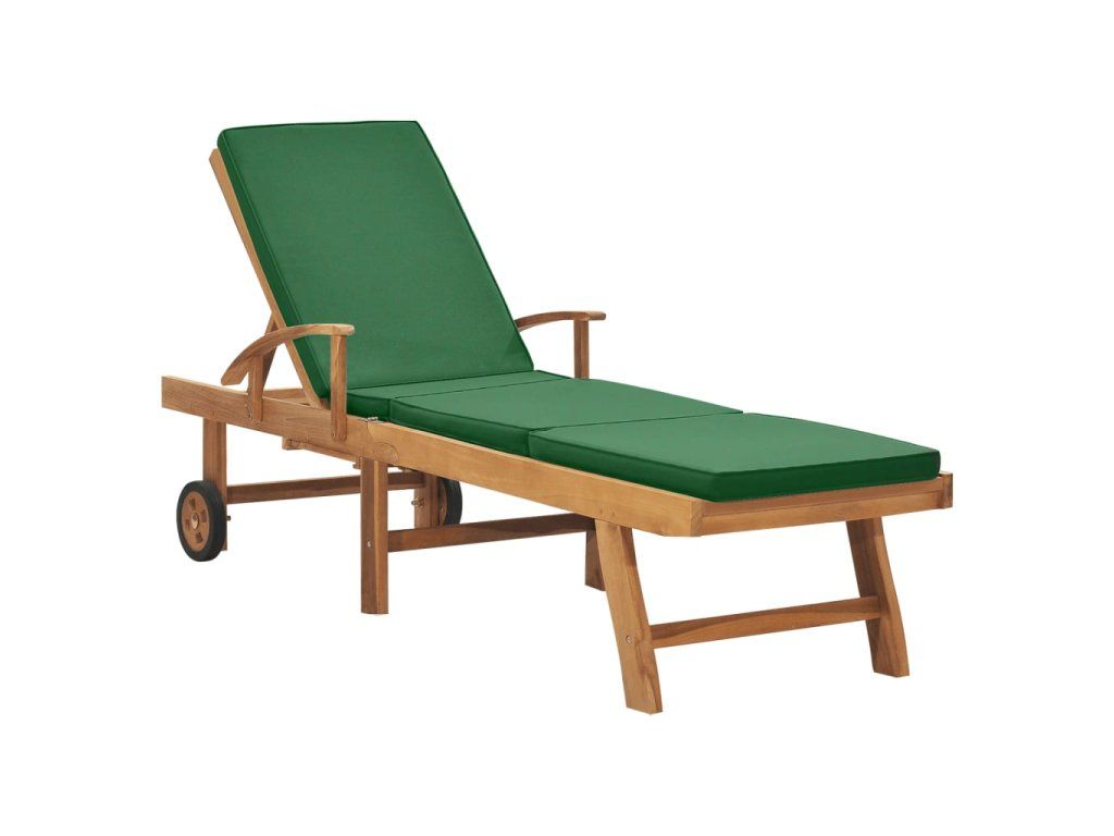 Multidom Záhradné ležadlo s podložkou, tíkový masív, zelené
