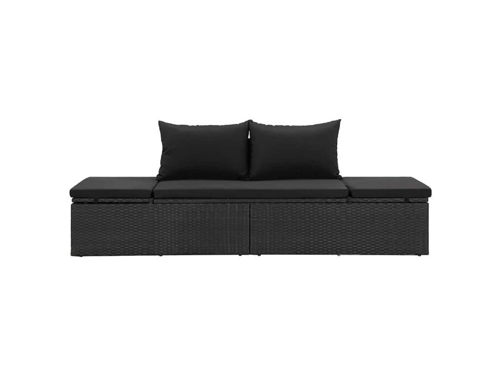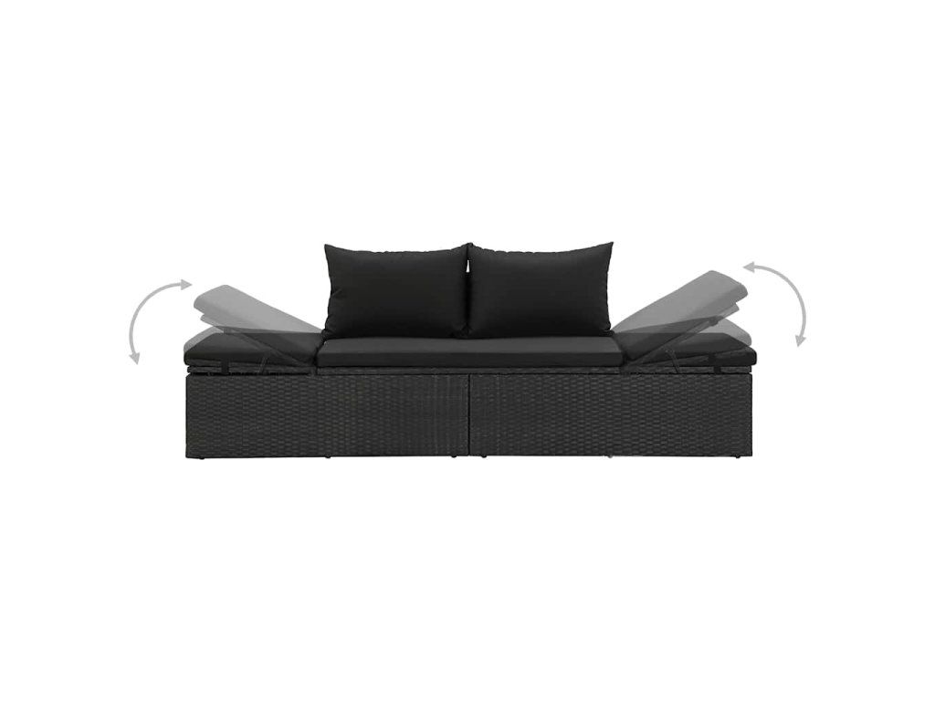 Multidom Záhradné ležadlo s vankúšmi čierne polyratanové