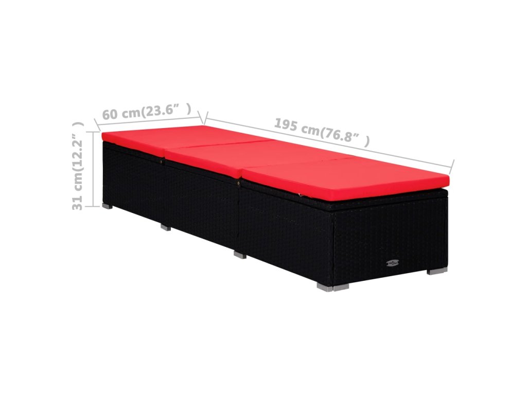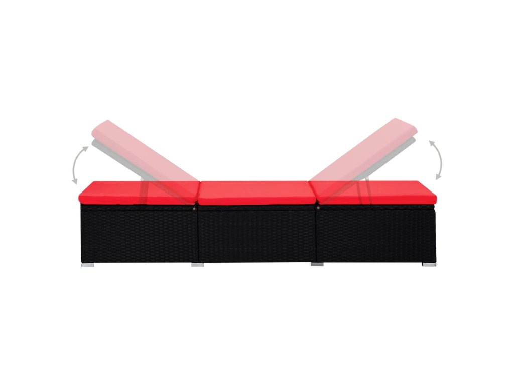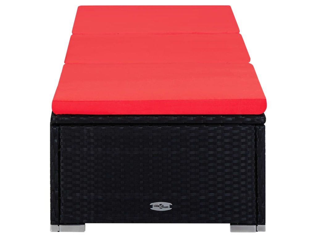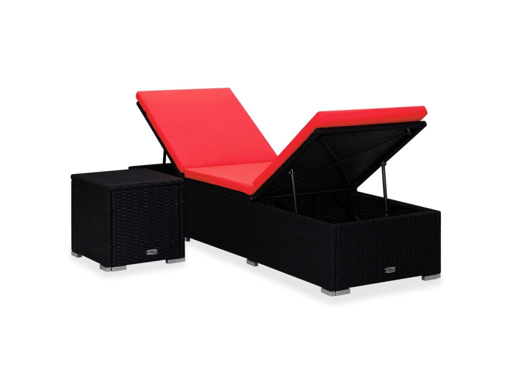 Multidom Záhradné ležadlo s vankúšom a čajovým stolíkom červené polyratan