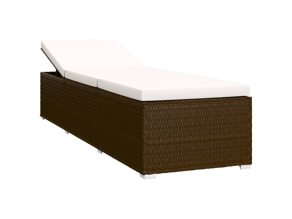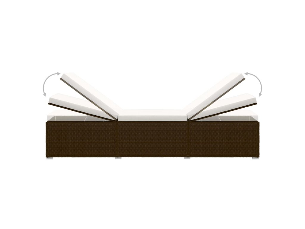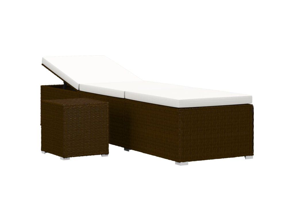 Multidom Záhradné ležadlo s vankúšom a čajovým stolíkom hnedé polyratanové
